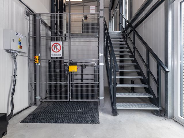 Ca. 17m2 en gelegen op de eerste verdieping. Bereikbaar middels een trap en een goederenlift. De units zij voorzien van verlichting, elektropunten en een hand bedienbare overheaddeur. De afmeting bedragen 1,96 x 3,39 x 5,00 (H x B x D).