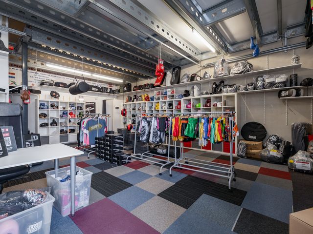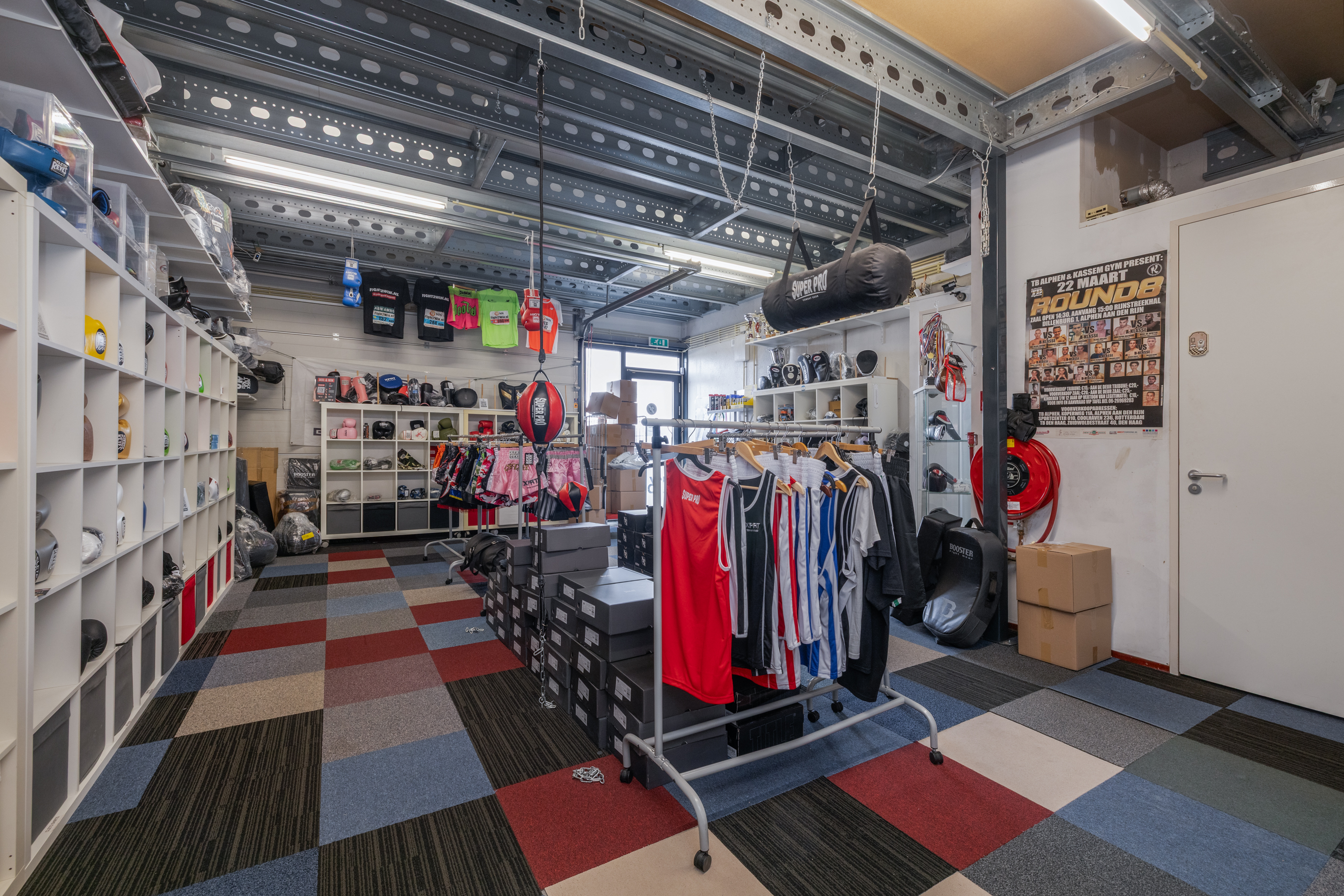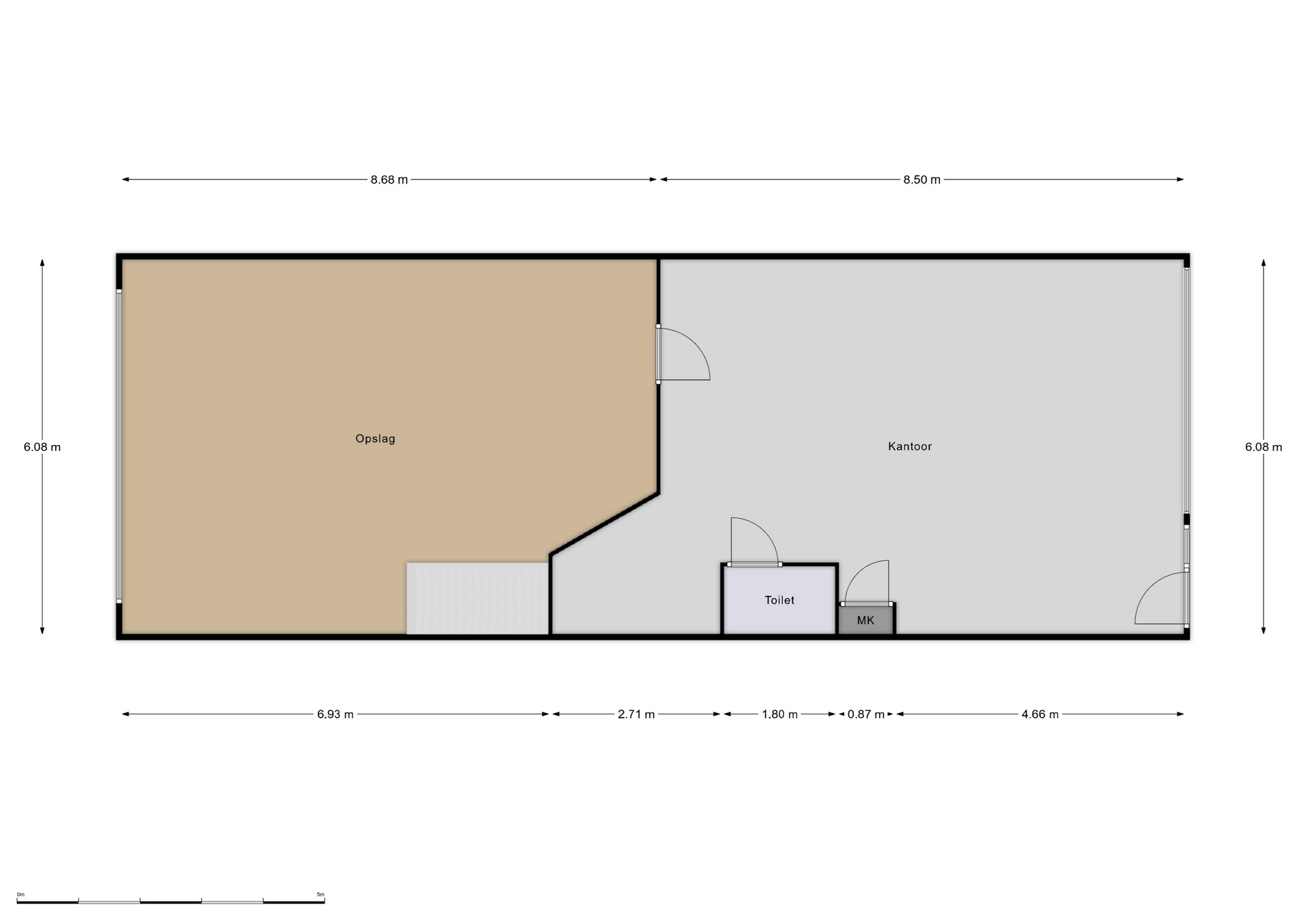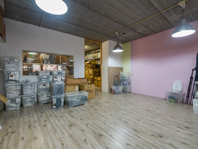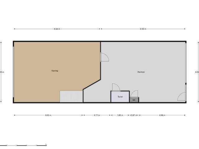 Binnenkomst via de loopdeur of de overheaddeur. De ruimte aan de voorzijde is ca. 52m2 en heeft eveneens toegang tot het toilet en de pantry. Het toilet is in zijn geheel betegeld en voorzien van een fonteintje. Toegang tot de ruimte aan de achterzijde middels een deur. Ca. 50m2 met veel lichtinval door de grote raampartij aan de achterzijde.