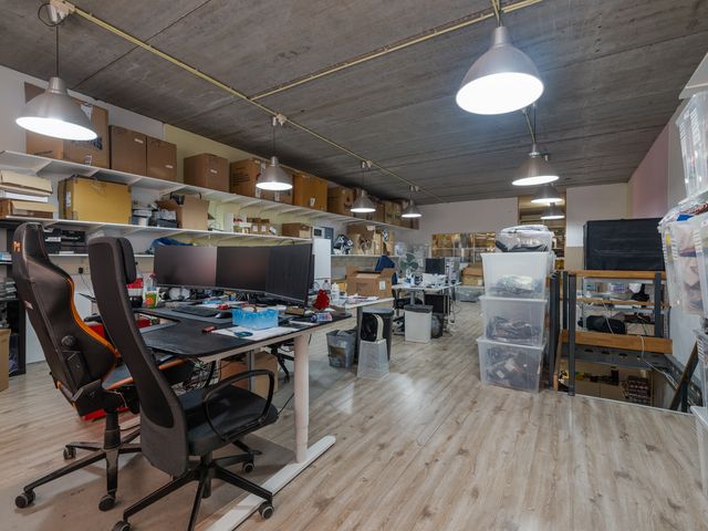 Opkomst in de lichte kantoorruimte van ca. 70m2. Gelegen aan de achterzijde van het pand. Langs één muur veel stopcontacten en UTP aansluitingen. Aan de voorzijde eveneens een kantoor van ca. 35m2. Kan ook dienen als magazijn door het af te sluiten met een deur. Eveneens een lichte ruimte vanwege de grote raampartij.