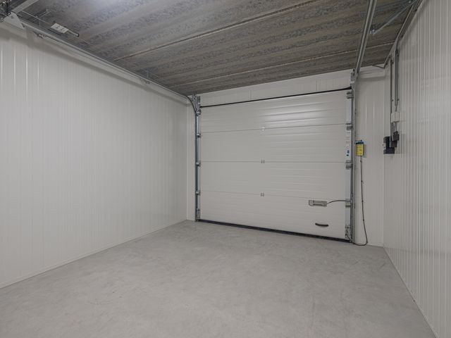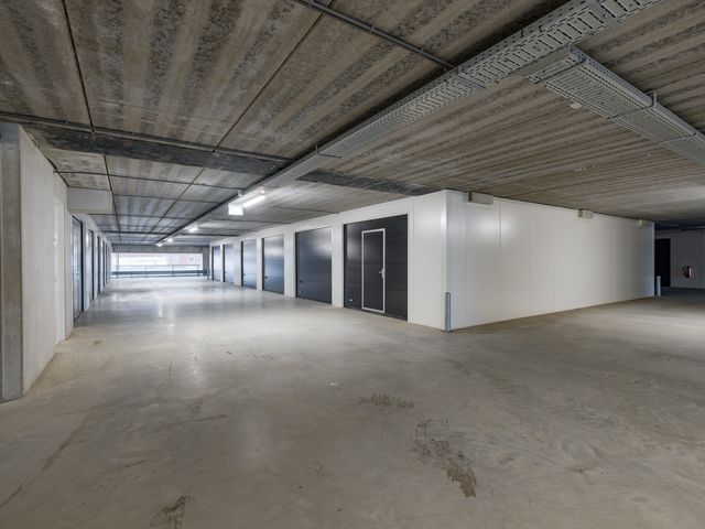 Garagebox gelegen op de 2e verdieping van ca. 18m2. De vrije hoogte van de box meet 2,75 meter. Met de auto bereikbaar via een helling en gelegen aan de voorzijde van het complex. De unit is toegankelijk middels een handmatig bediende overheaddeur. De uitvoering bestaat uit verlichting, twee dubbele wandcontactdozen en de unit beschikt over een eigen hoofdschakelaar voorzien van 16A, 230V.