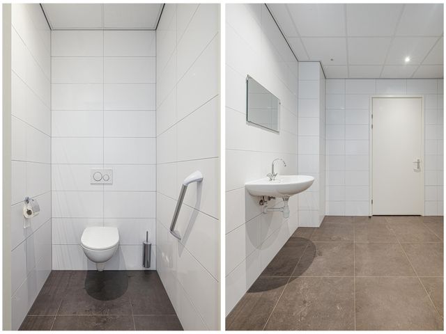 Het complex bestaat uit een viertal verdiepingen. Op alle verdiepingen tref je een sanitaire ruimte met toiletten, urinoir en wastafel.