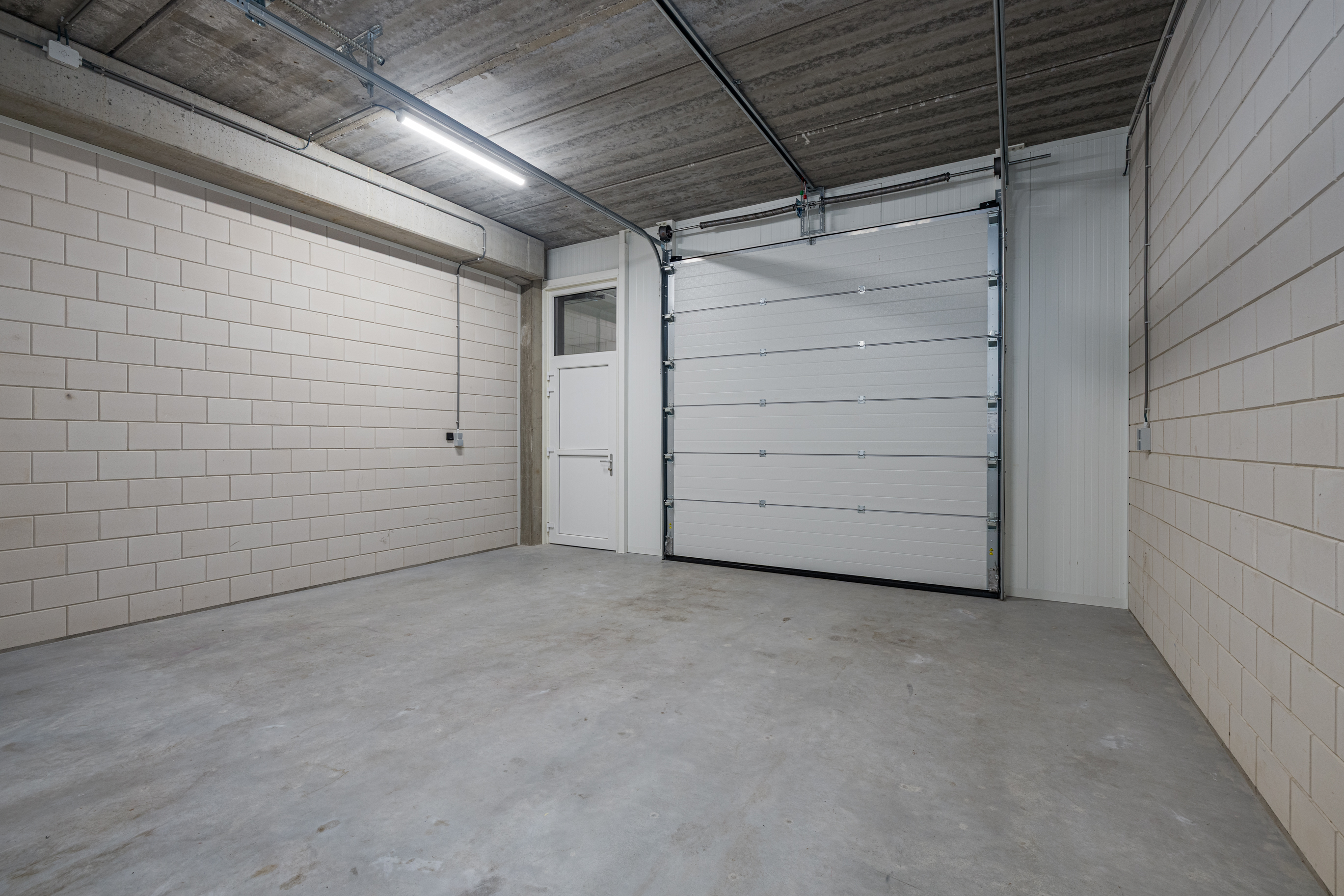 - Automatisch bedienbare overheaddeur (3,0m breed x 3,2m hoog) met afstandbediening.
