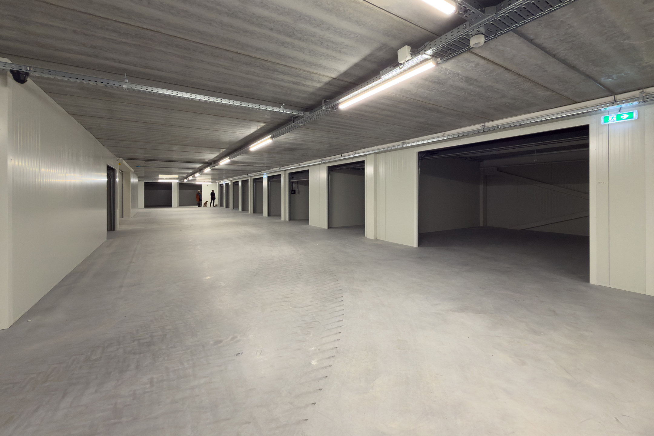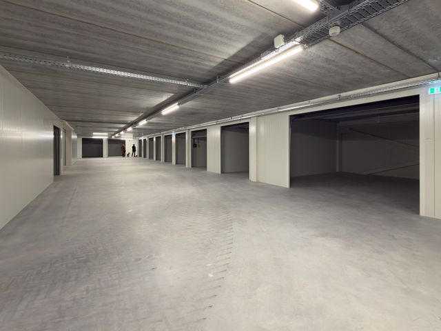 Garagebox gelegen op de 2e verdieping van ca. 21m2 (BVO). De hoogte van de unit meet 2,70 meter met een doorrijhoogte van ca. 2,35m. Met de auto bereikbaar via een hellingbaan en gelegen aan de zijkant van het complex. De unit is toegankelijk middels een handmatig bediende overheaddeur. De uitvoering bestaat uit verlichting en één dubbele wandcontactdoos.