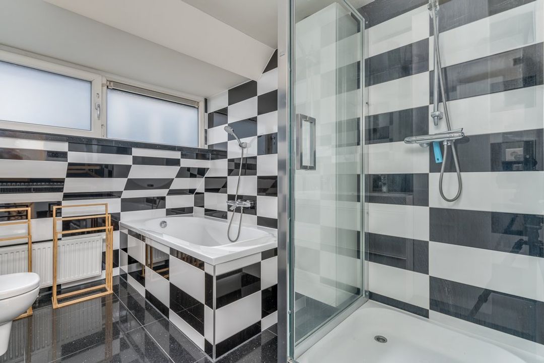 Ruime en lichte overloop met toegang tot alle vertrekken en tevens tref je hier de opstelling voor de wasmachine en wasdroger en de cv-ketel. De slaapkamers zijn resp. ca. 9m2, 10m2 en 17m2. Een van de slaapkamers is uitgevoerd met een inbouw kledingkast. De keurige badkamer is voorzien van een ligbad, douche, wastafel en 2e toilet.