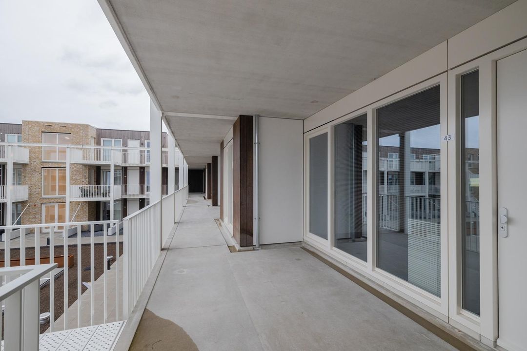 Entree in de hal met toegang tot diverse vertrekken. Aan de linkerzijde vinden we de meterkast en een apart gesitueerd modern hangend toilet met fonteintje. Aan de rechterzijde is de eerste slaapkamer te bereiken van circa 11m2. Deze kamer kijkt uit op de galerij middels een grote raampartij. Naast de slaapkamer is de ruime berging gesitueerd welke tevens beschikt over de aansluitingen voor wasmachine en wasdroger. De luxe badkamer is volledig betegeld en beschikt over een inloopdouche, dubbel wastafelmeubel en designradiator. Dankzij de verwarmde spiegel met diverse instellingen is deze nooit meer beslagen!