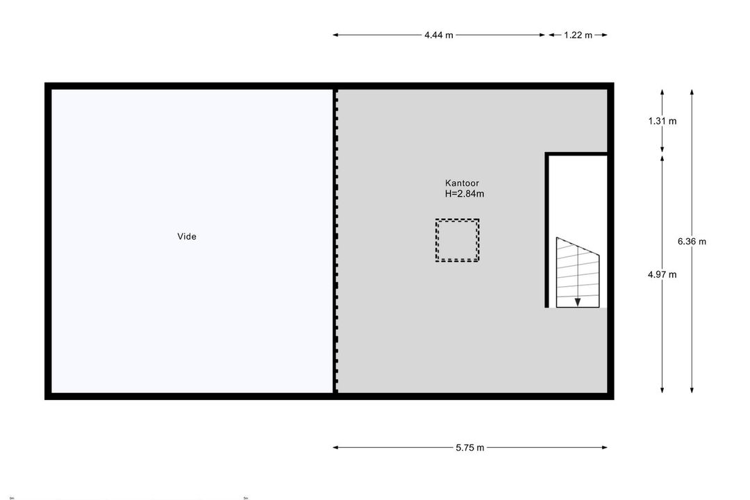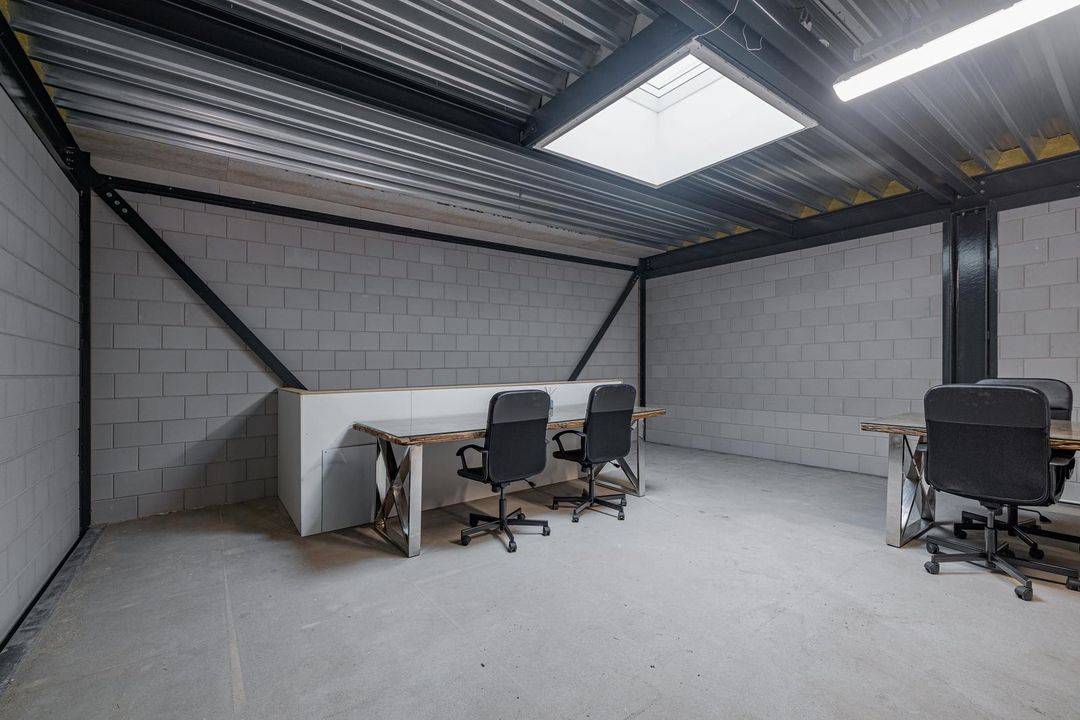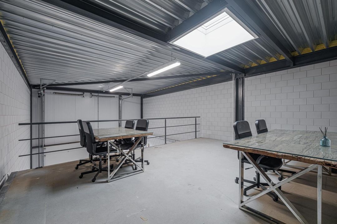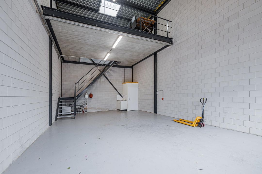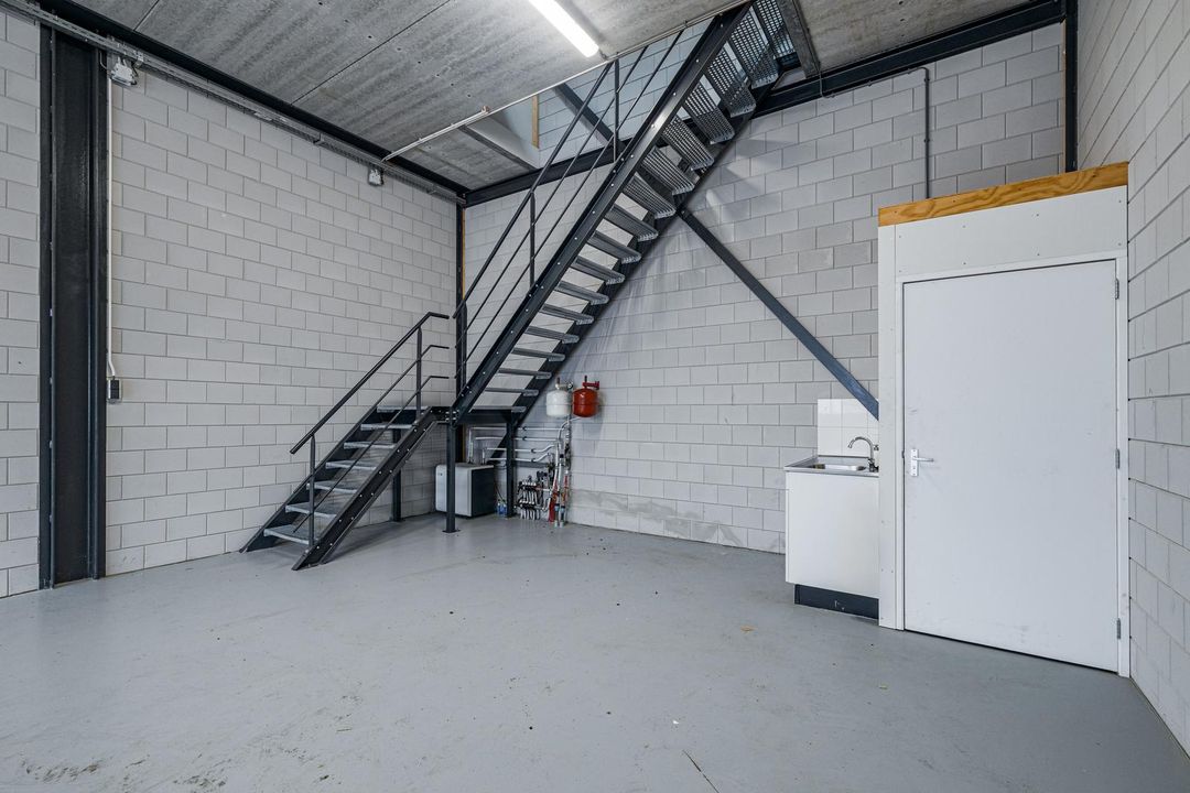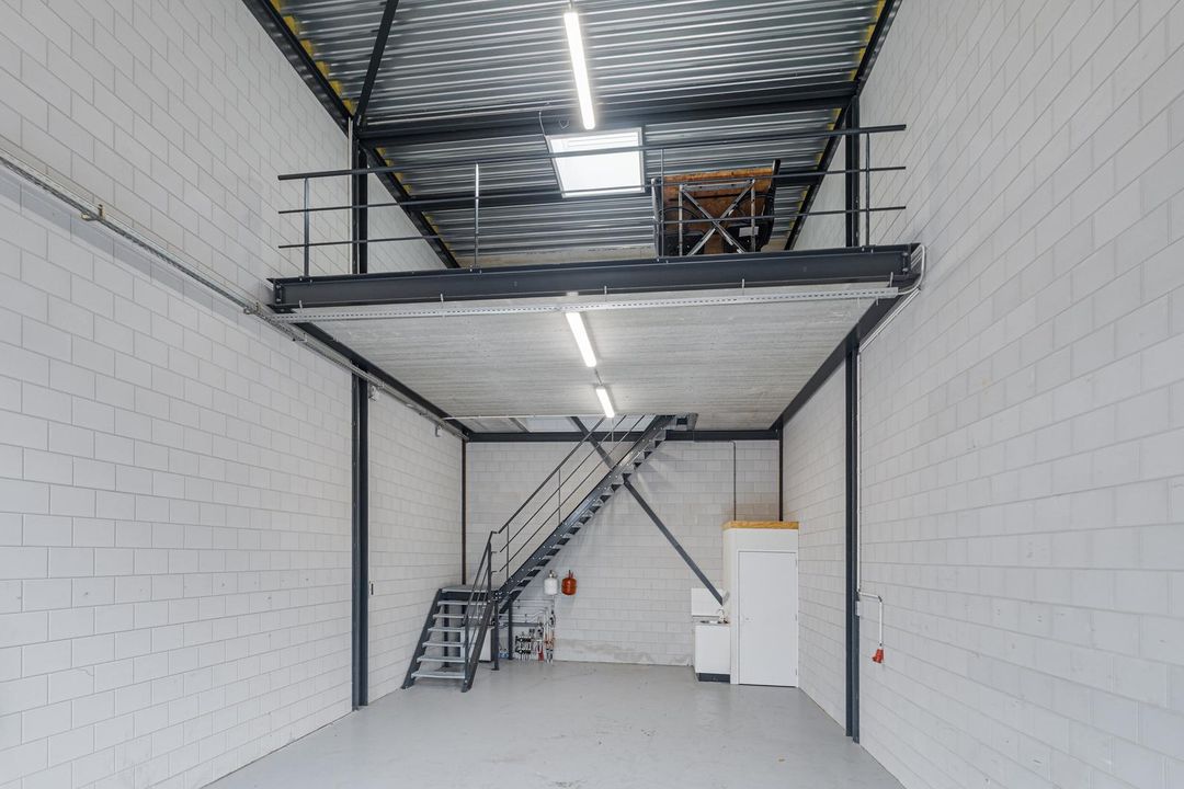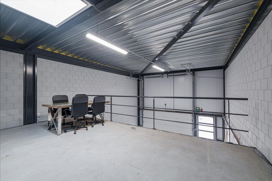 De entresol meet ca. 36m2 en ligt aan de achterzijde van de bedrijfshal. Het unieke is dat er een elektrisch bedienbaar daklicht is geïnstalleerd. Hierdoor is er extra daglichttoetreding en is het tevens mogelijk om te ventileren. Vanaf de entresol heb je zicht op de hal.