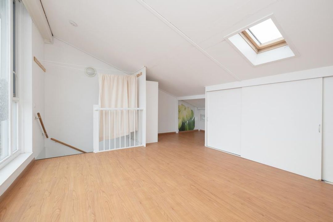 Lekkere lichte ruimte door de vele raampartijen. Te gebruiken als studeerkamer of slaapkamer. Eveneens een bergruimte in knieschotten en een bergkast met de opstelling voor de wasmachine.