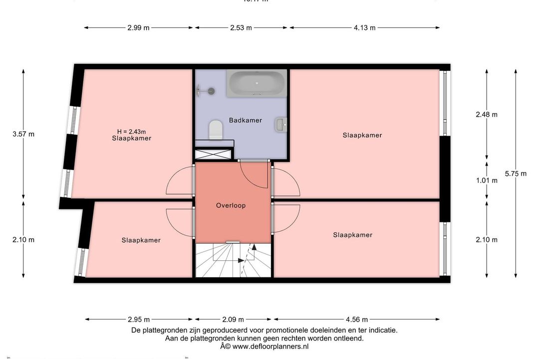 Toegang tot de verschillende vertrekken. Vier ruime slaapkamers en ruime badkamer. De badkamer is voorzien van een bad, extra toilet en separate douche. Twee slaapkamers zijn gelegen aan de voorzijde van de woning, beide uitgevoerd met grote raampartijen. De twee andere zijn gelegen aan de achterzijde van de woning.