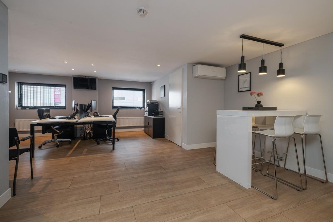Immobilia presents a multifunctional commercial property with a spacious industrial hall of approx. 370 m² and a luxurious office space of approx. 120 m². The property also has several private parking spaces in front of the door. Located in a central location on the Rodenrijs industrial estate, just a few minutes' drive from the A13 and A20 motorways.