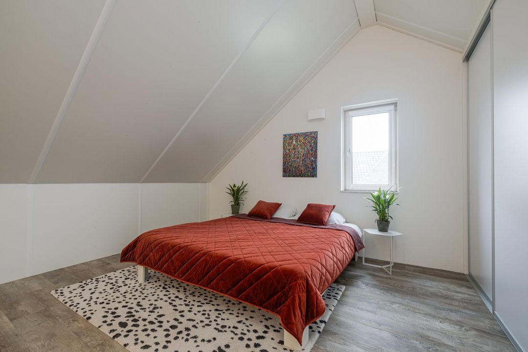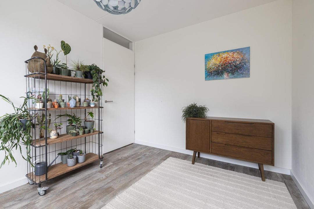 Via de overloop toegang tot drie slaapkamers en de badkamer. De eerste slaapkamer van ca. 6m2 aan de achterzijde is uitstekend geschikt als kinderkamer of werkruimte. De tweede slaapkamer van ca. 15m2 biedt een mooi uitzicht over de tuin, terwijl de derde slaapkamer van ca. 12m2 aan de voorzijde is gelegen. Alle kamers zijn strak en praktisch ingericht, wat een verzorgde indruk geeft.