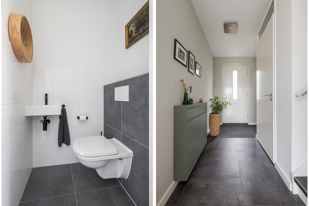 Bij binnenkomst vanuit de hal heb je toegang tot het luxe hangend toilet, de trap naar de 1e verdieping en het woonkamer gedeelte.