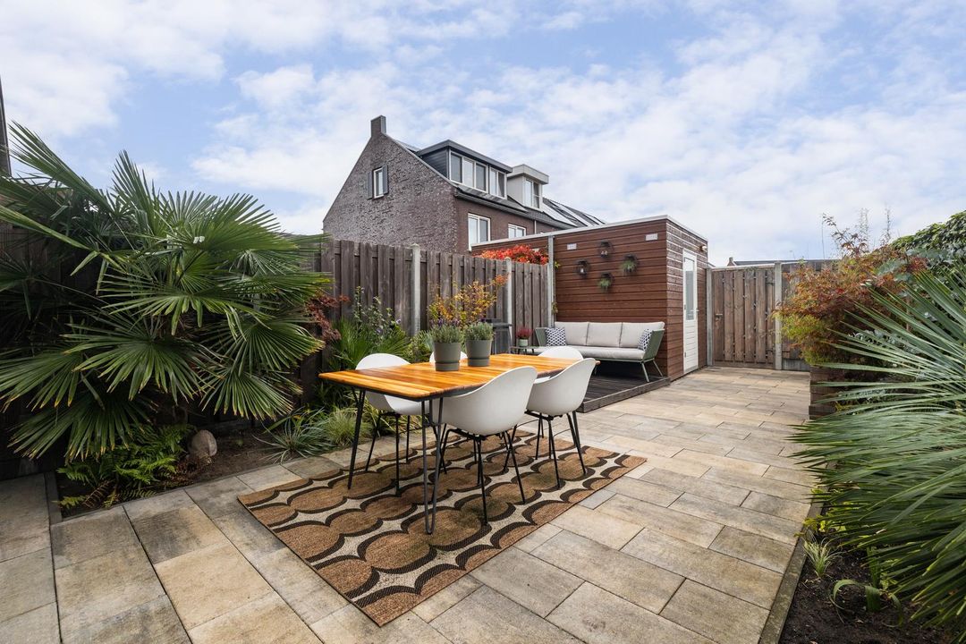 Achterin de tuin bevindt zich de houten schuur en via de zijomloop van de tuin is een tweede schuur bereikbaar, toegankelijk vanaf de voorzijde van de woning.