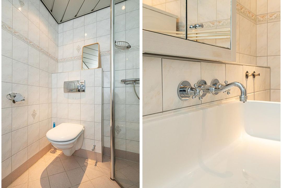 De woning beschikt over twee ruime slaapkamers van ca. 20m2 en ca. 14m2, beide voorzien van praktische schuifkasten. De moderne badkamer (ca. 5m2) is volledig betegeld en uitgerust met een douchecabine, dubbel wastafelmeubel, hangend toilet, én ruimte voor een wasmachine en droger. Daarnaast is er een separaat tweede toilet met fonteintje en een handige bergkast.