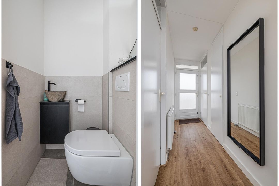 Via de entree krijg je toegang tot de gang en bereik je de verschillende vertrekken. Het toilet is volledig vernieuwd, modern afgewerkt, geheel betegeld en voorzien van een hangtoilet met fonteintje.