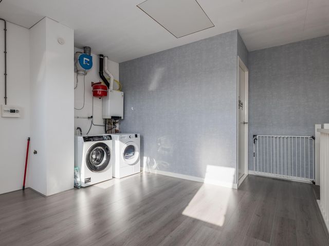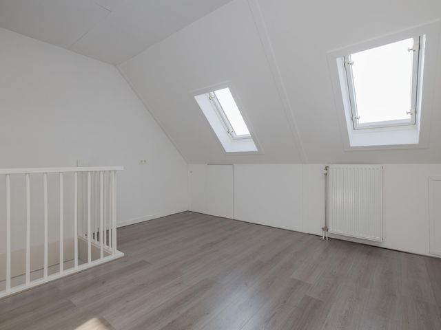 Ruime overloop van ca. 20m2, voorzien van twee dakramen. Hier tref je de opstelling voor de cv-ketel en de opstelplaats voor de wasmachine en de droger. Heerlijke vierde slaapkamer van ca. 14m2 voorzien van een dakkapel en met een laminaat vloer.