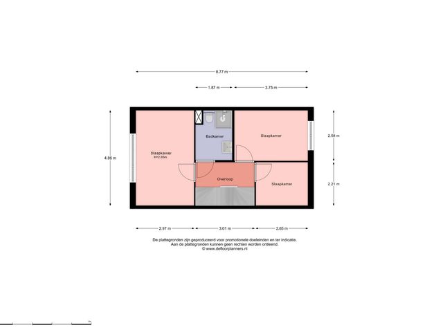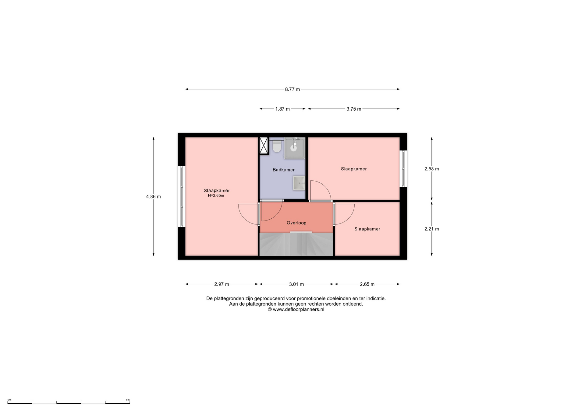 Overloop met toegang tot de drie (3) keurig afgewerkte slaapkamers. Slaapkamer I gelegen aan de voorzijde van ca. 14,5m2, slaapkamer II is ca. 9,7m2 en is gelegen aan de achterzijde. De kleinste slaapkamer van de woning is ca. 6m2 en is eveneens gelegen aan de achterzijde van de woning.