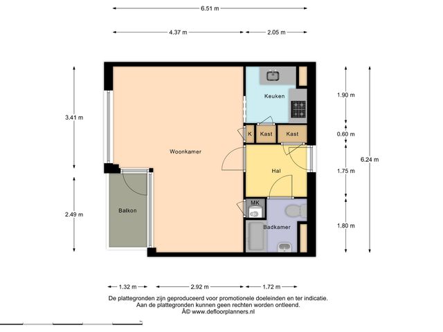 Entree in de hal van het appartement. Toegang tot de woonkamer/keuken en badkamer. De lichte woon-/slaapkamer is ca. 24m2 en is gelegen aan de voorzijde. Direct in verbinding met de keuken. Eenvoudig uitgevoerd in het het groen en een bruin betegelde vloer. Hier tref je tevens de aansluiting voor de wasmachine. Meerder vasten kasten in het appartement, waar in een zich de boiler bevindt.