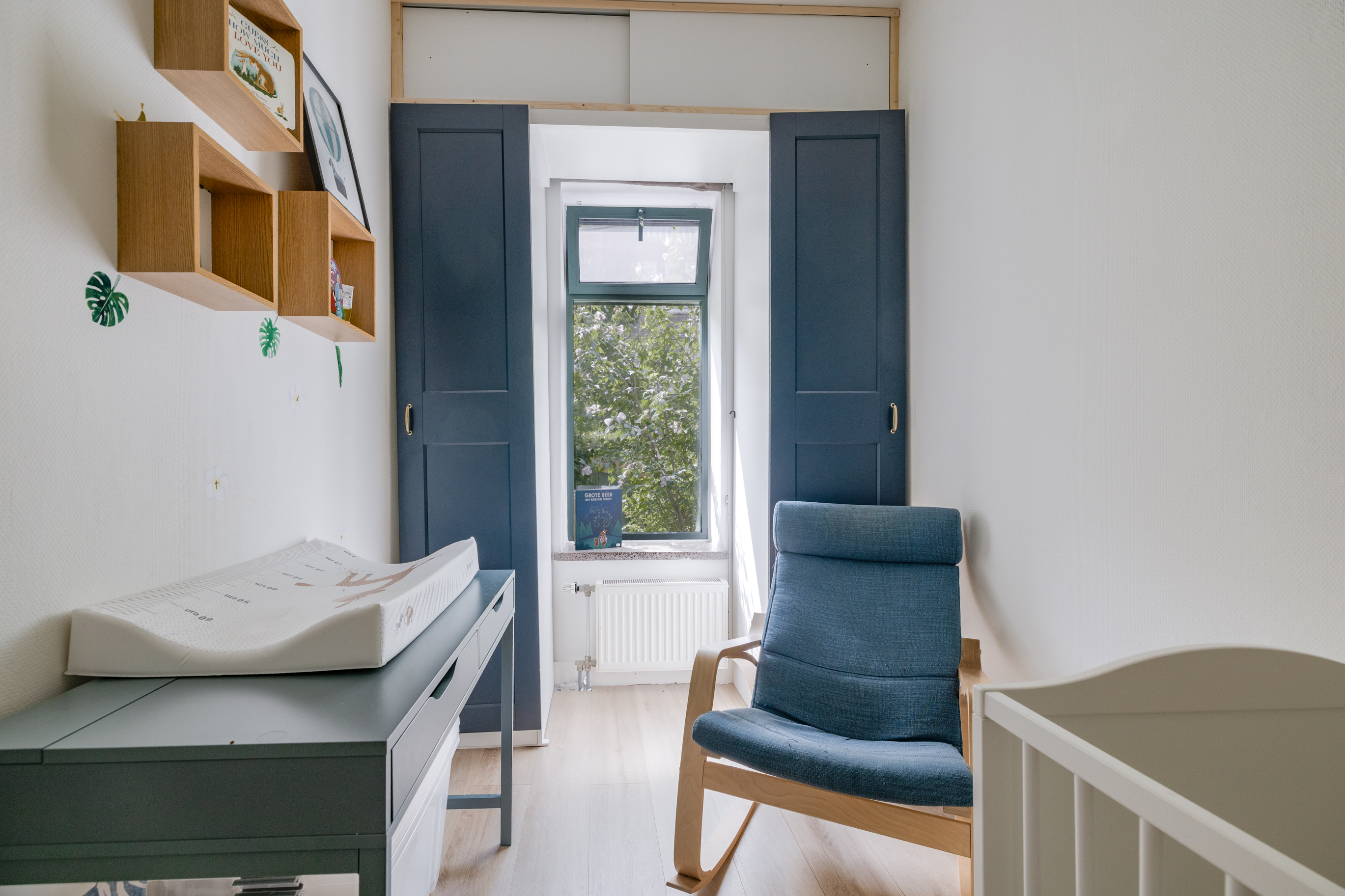 Aan de voorzijde tref je een slaapkamer van ca. 6,5m2 met uitzicht op de voortuin. Bonuspunten voor het souterrain van ca. 12m2 met stahoogte en te openen raam, ideaal als werkplek, extra opslag of chillruimte. Te bereiken middels een deur in de badkamer. De badkamer is in zijn geheel betegeld en uitgevoerd met een ligbad, badkamermeubel met wastafel en een handdoeken radiator. Het toilet is apart gesitueerd naast de badkamer. Aan de achterzijde tref je de slaapkamer van ca. 8,6m2 met vaste kast.