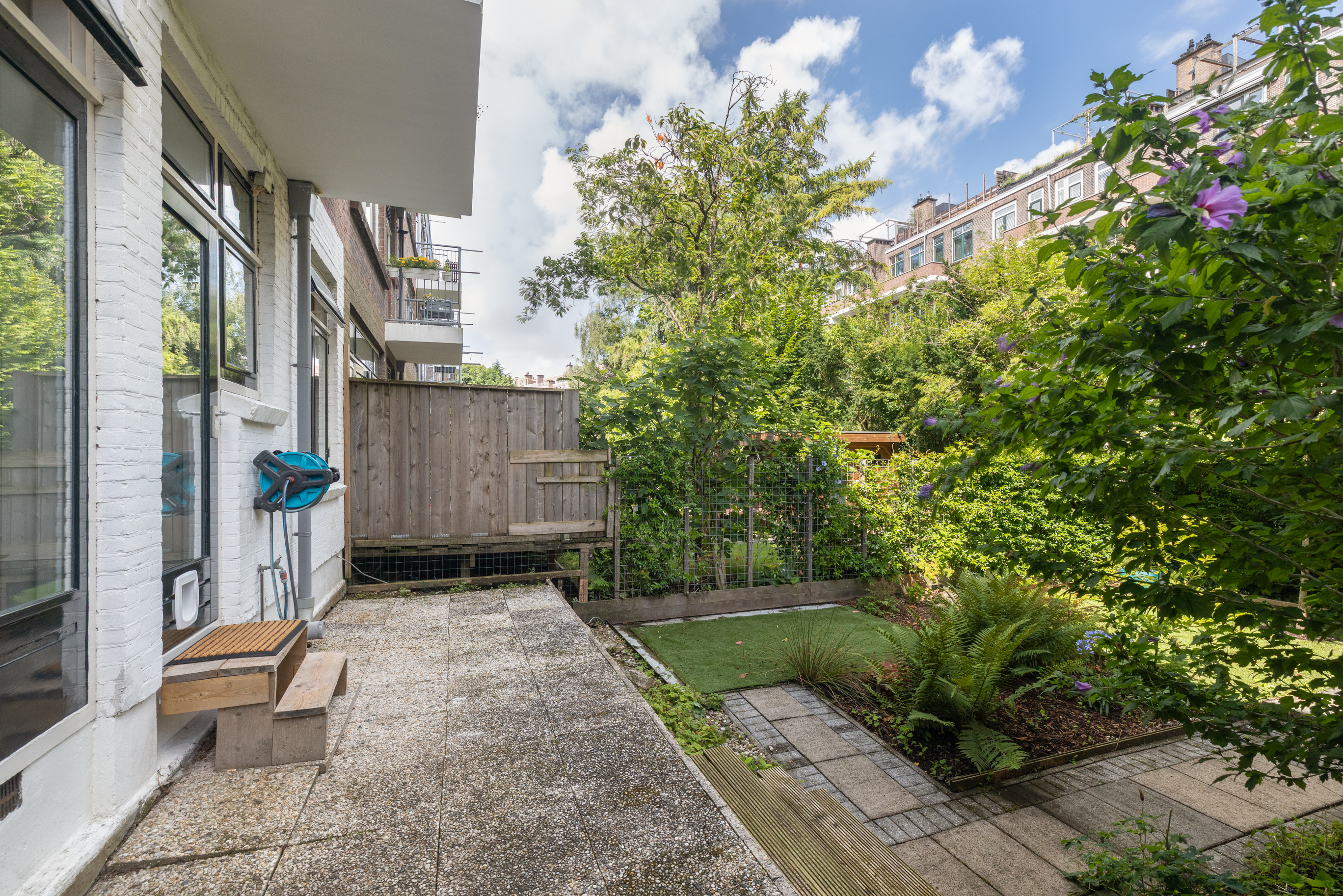 Via openslaande deuren bereik je het terras en de heerlijke achtertuin. Het terras is ca. 2 meter diep en de tuin ca. 9,65 meter diep. Beide hebben een riante breedte van ca. 7,90 meter. Heerlijke groene tuin met privacy, een prachtige kastanjeboom en een houten berging.