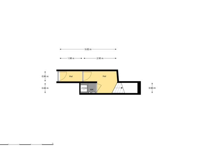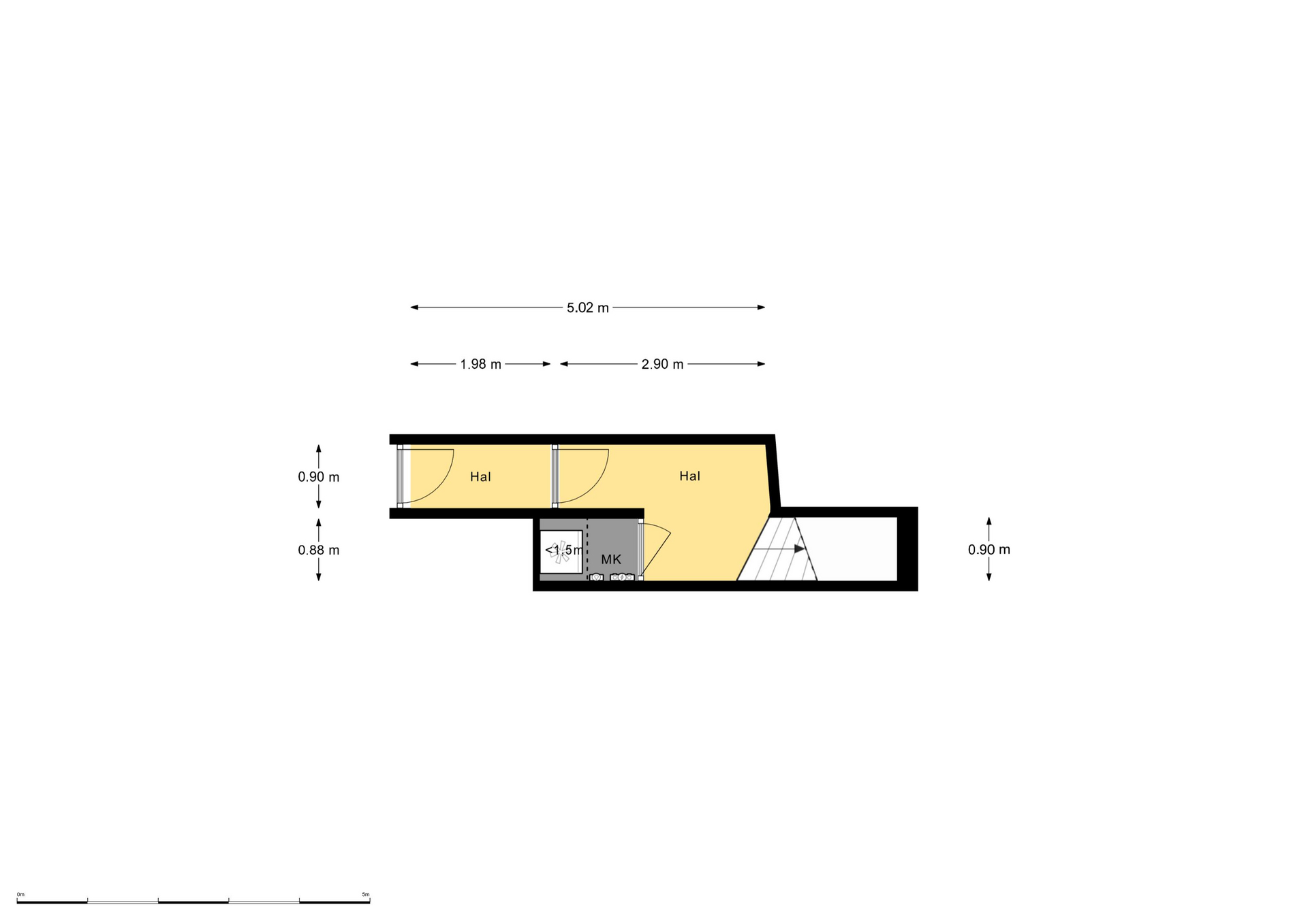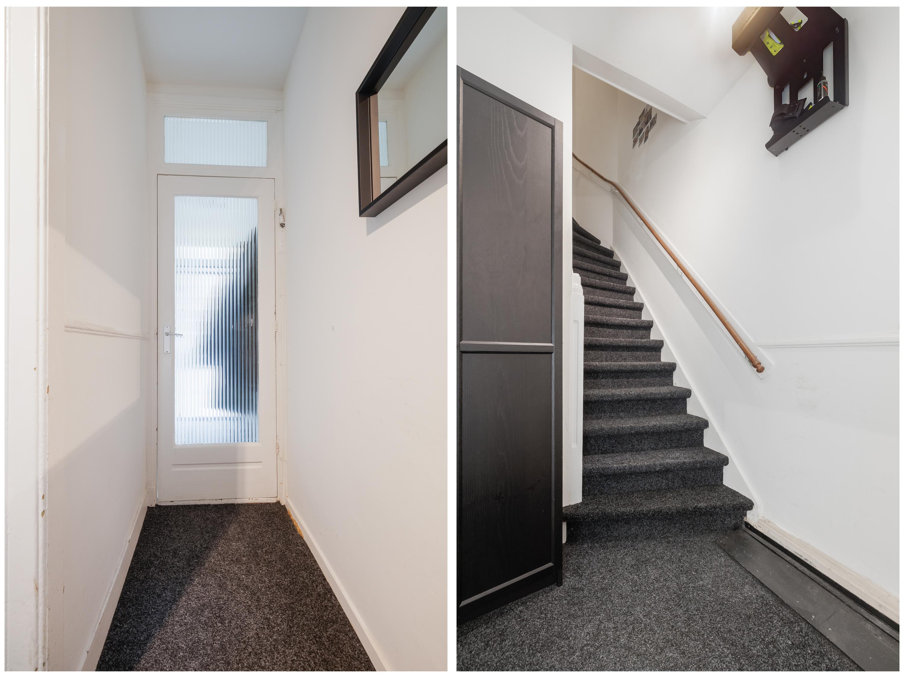 Entree in het voorportaal en middels een deur toegang tot de overloop. Hier tref je de meterkast en de trapopgang naar de eerste verdieping.