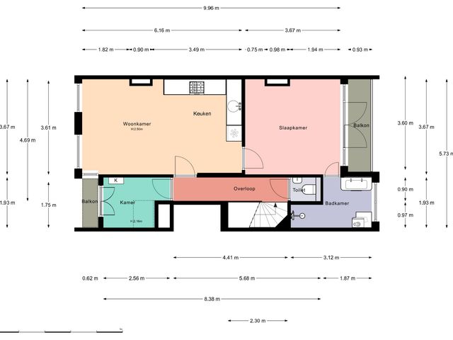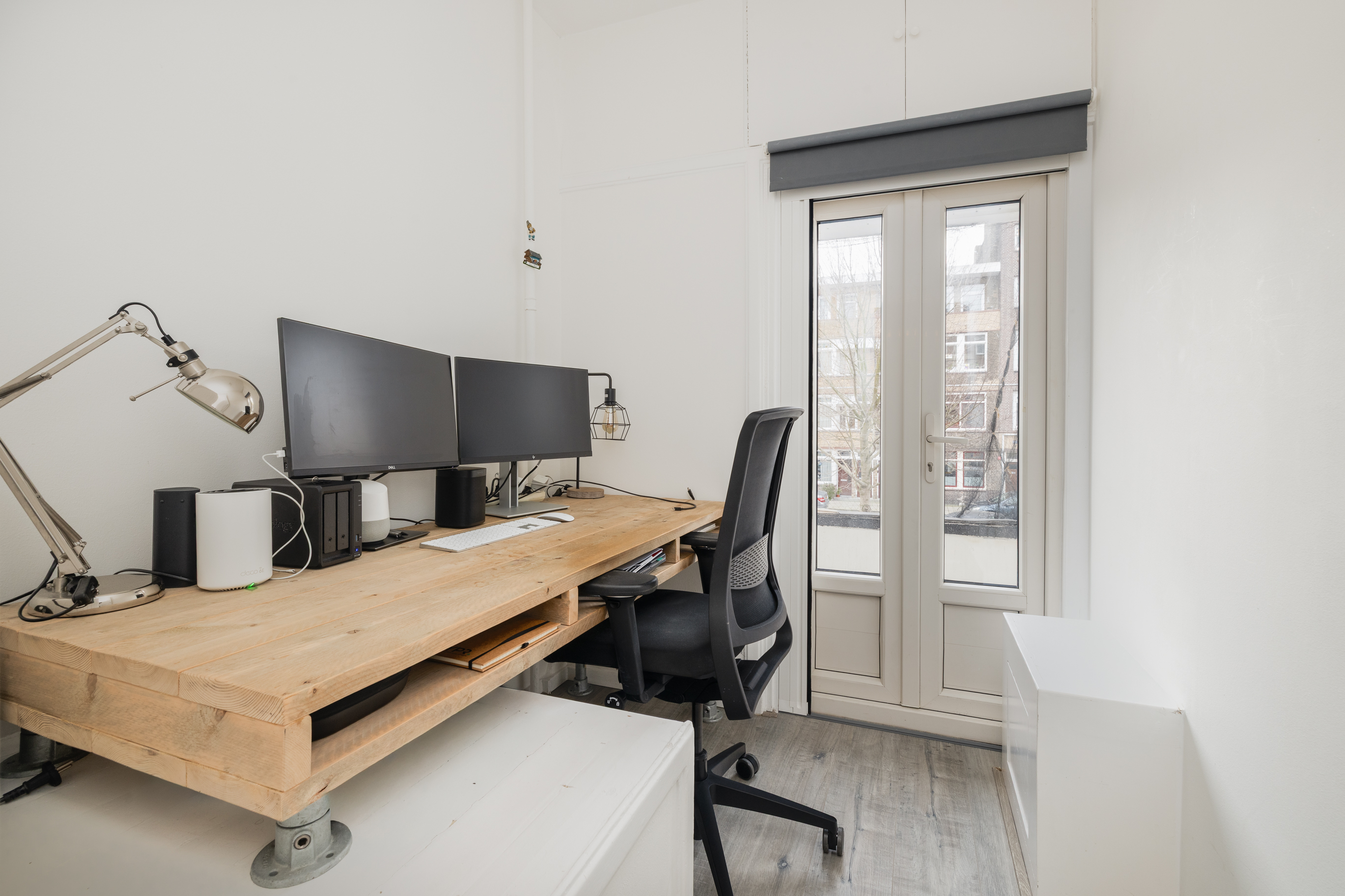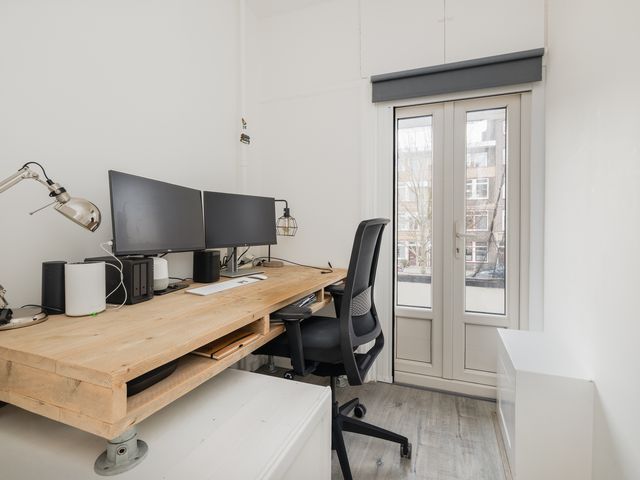 De tweede kamer is via de overloop te bereiken en ligt aan de voorzijde van de woning. Met een oppervlakte van ca. 4m² is dit een ideale ruimte als studeer- of werkkamer maar ook geschikt als kinderkamer. Daarnaast beschikt de kamer over toegang tot een balkon aan de voorzijde, wat zorgt voor extra comfort en natuurlijke lichtinval.