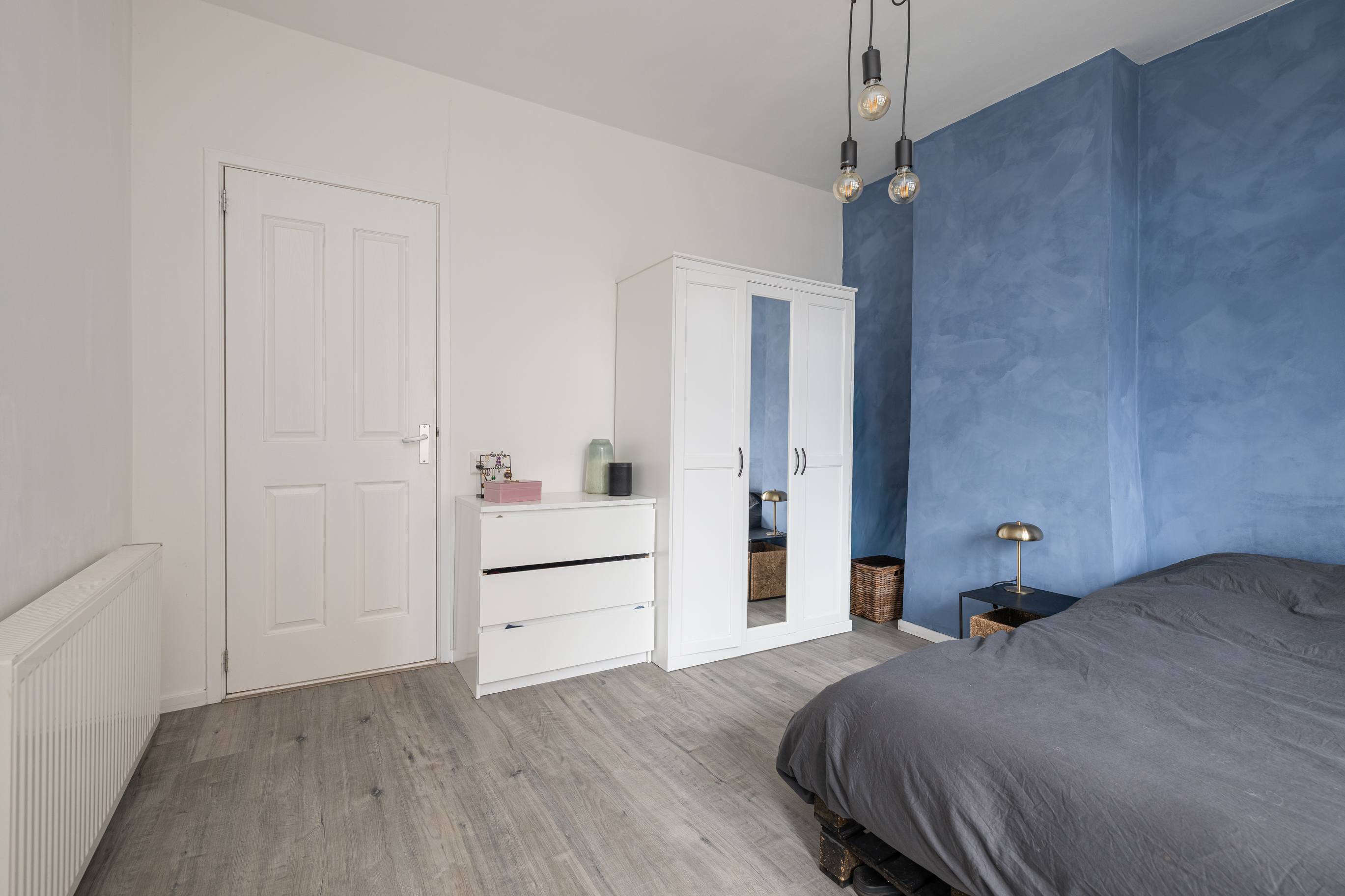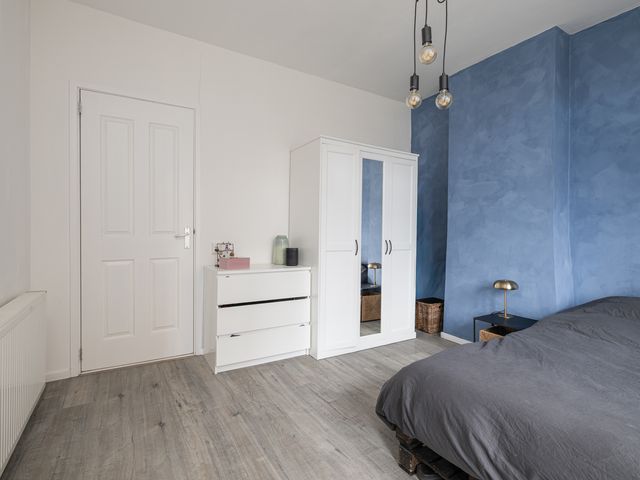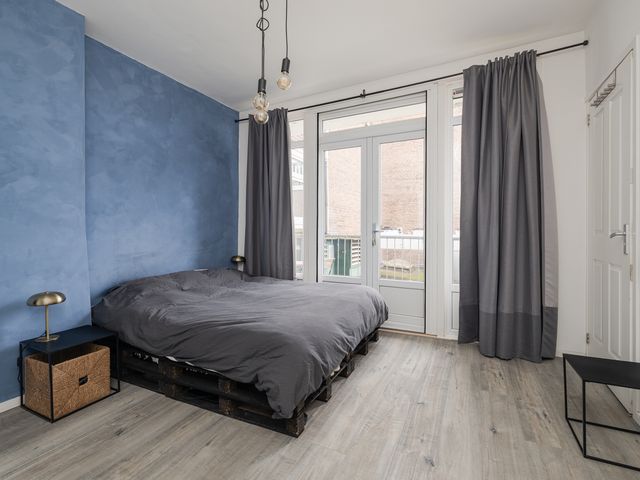 Via de woonkamer bereik je de royale hoofdslaapkamer aan de achterzijde van de woning, met een oppervlakte van ca. 13m². Vanuit de slaapkamer heb je via openslaande deuren toegang tot het balkon dat is gelegen op het noordwesten.