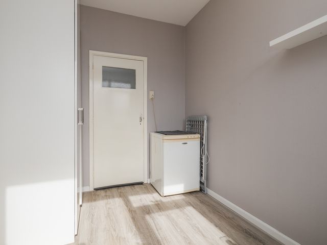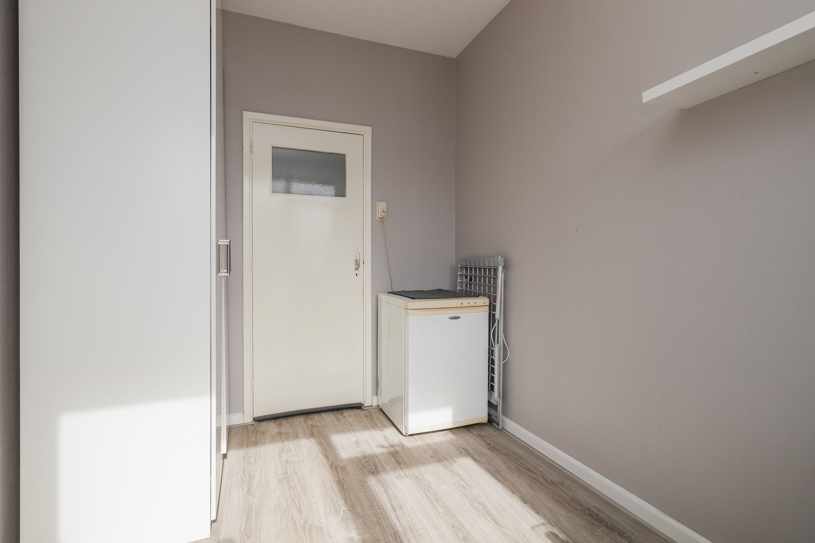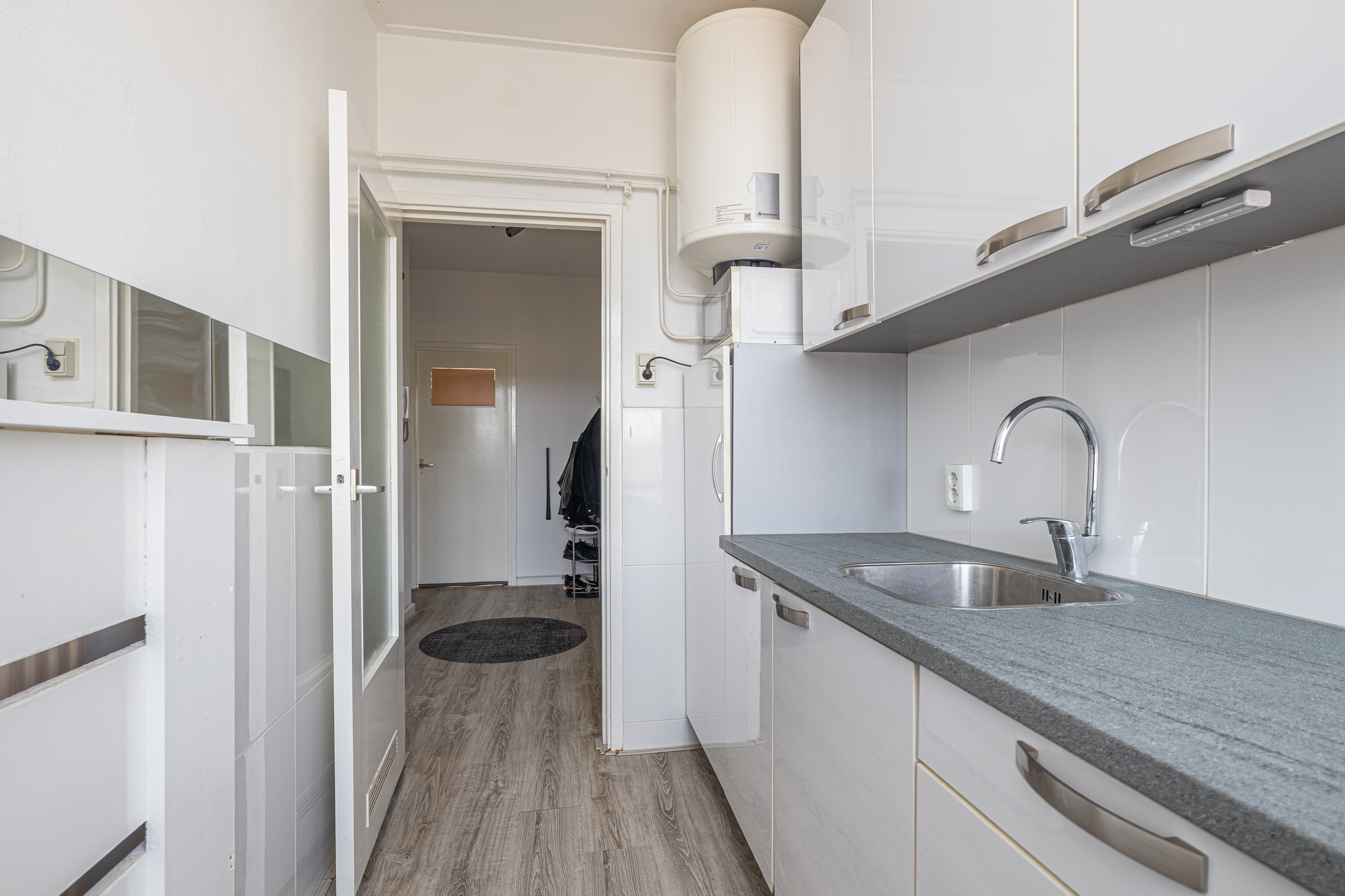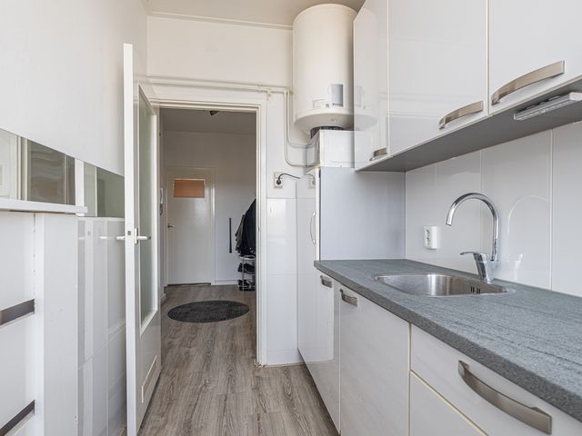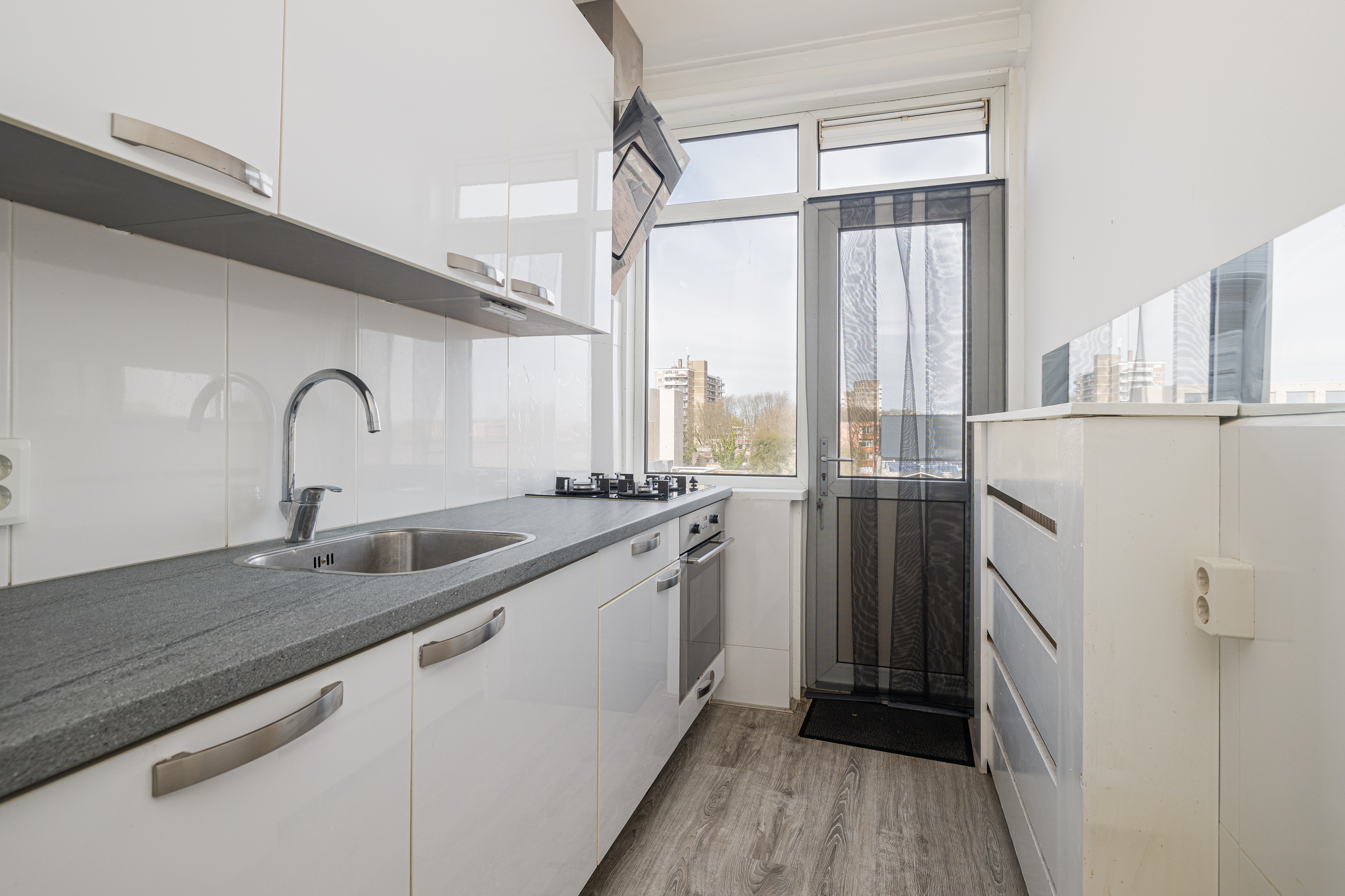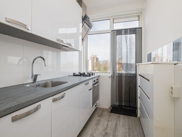 Via de hal bereik je de nette keuken in witte kleurstelling en is voorzien van diverse inbouwapparatuur, waaronder een gaskookplaat, oven, afzuigkap en vaatwasser. Vanuit de keuken is er tevens toegang tot het balkon gelegen op het noorden.