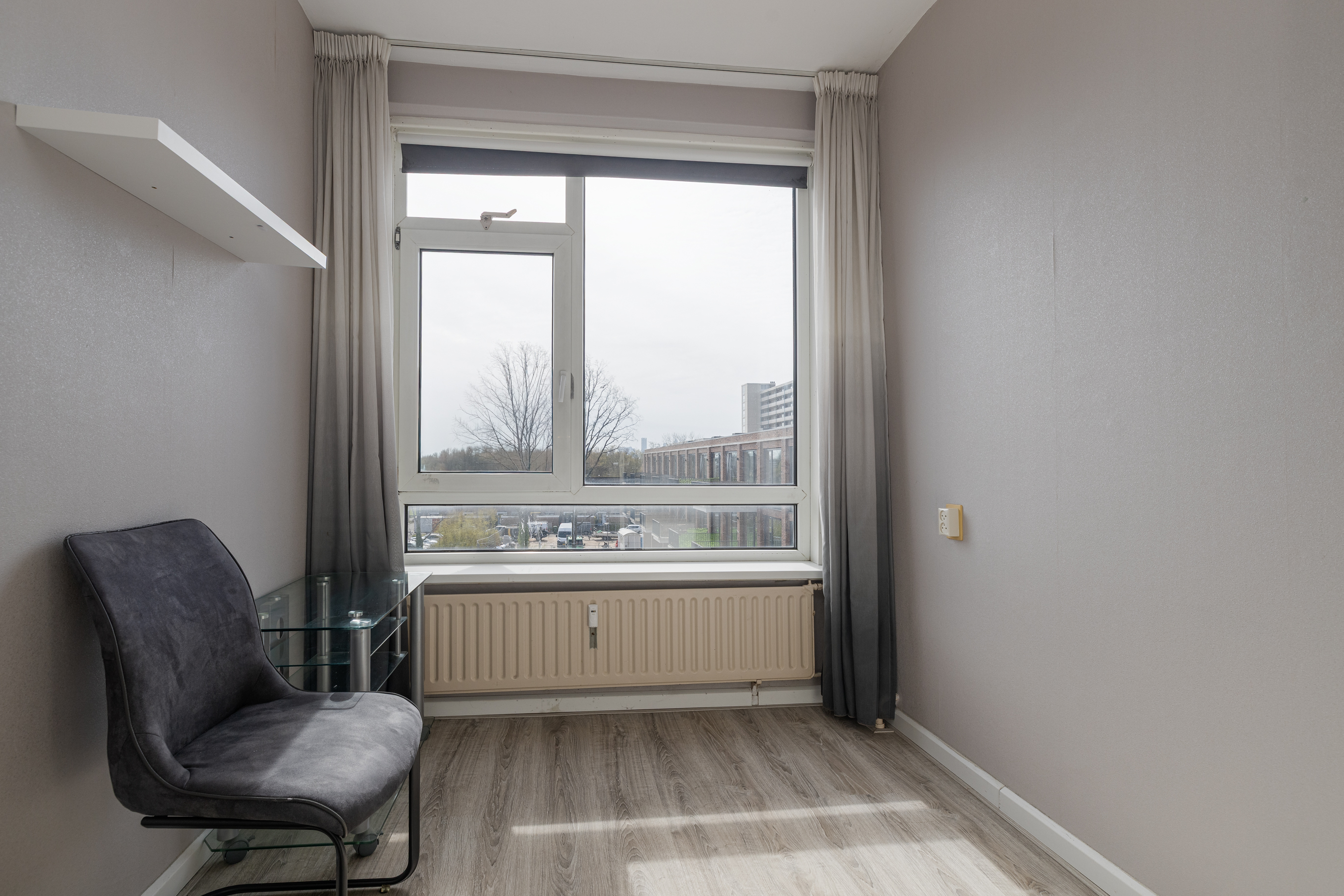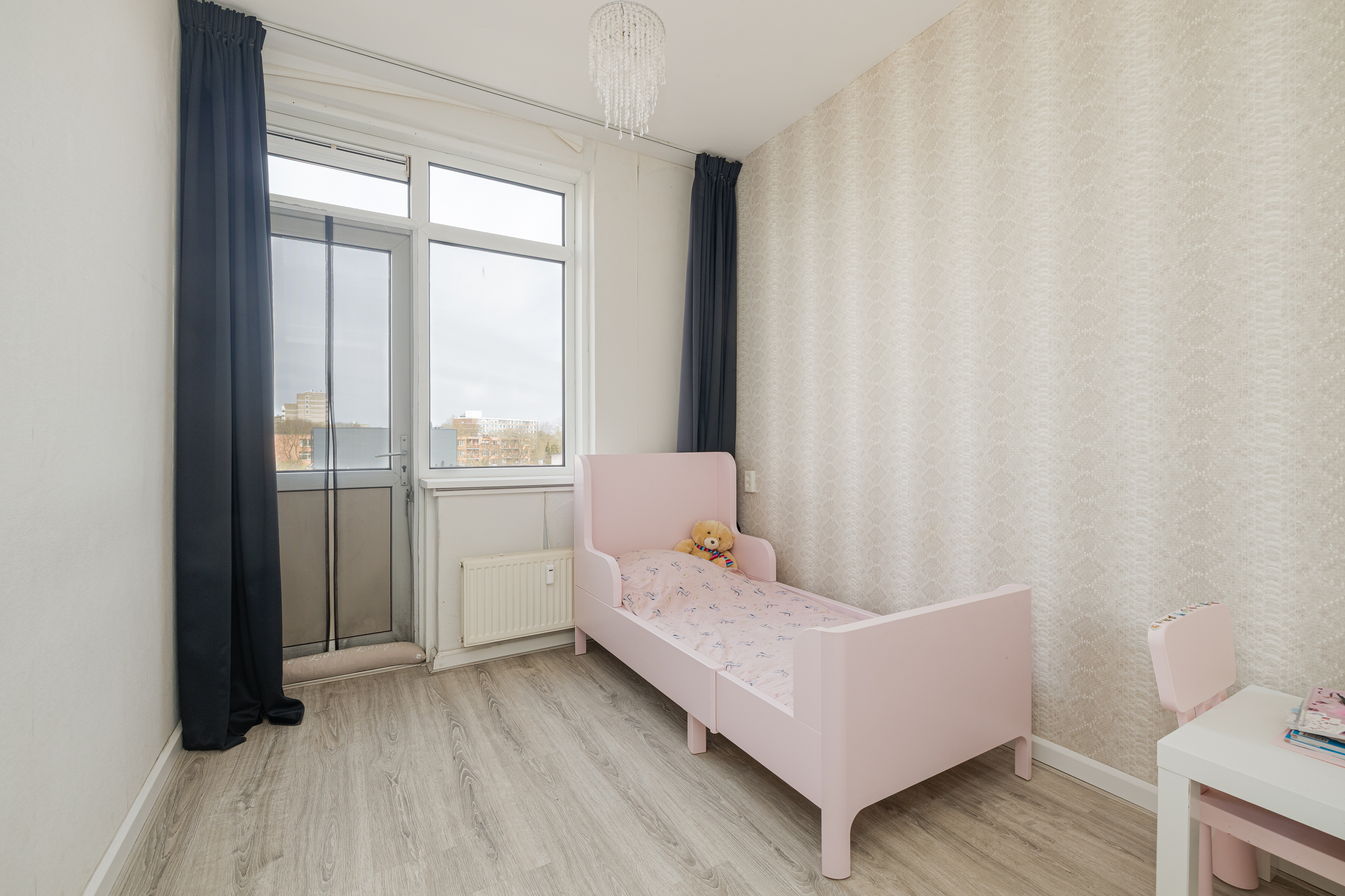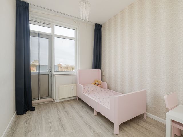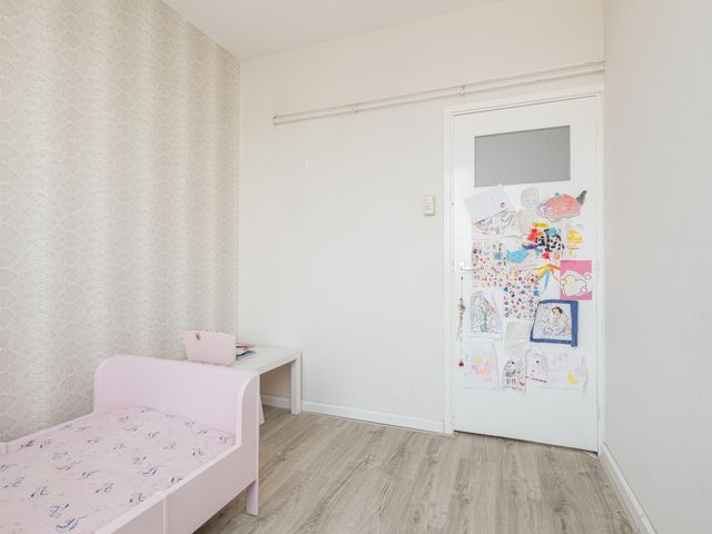 Aan de voor- en achterzijde van de woning bevinden zich nog twee slaapkamers van beide ca. 7m². Deze ruimtes zijn uitstekend geschikt als kinder-, logeer- of studeerkamer. De slaapkamer aan de achterzijde biedt eveneens toegang tot het balkon. Dankzij de grote raampartijen in beide kamers voelt de woning licht en ruimtelijk aan.