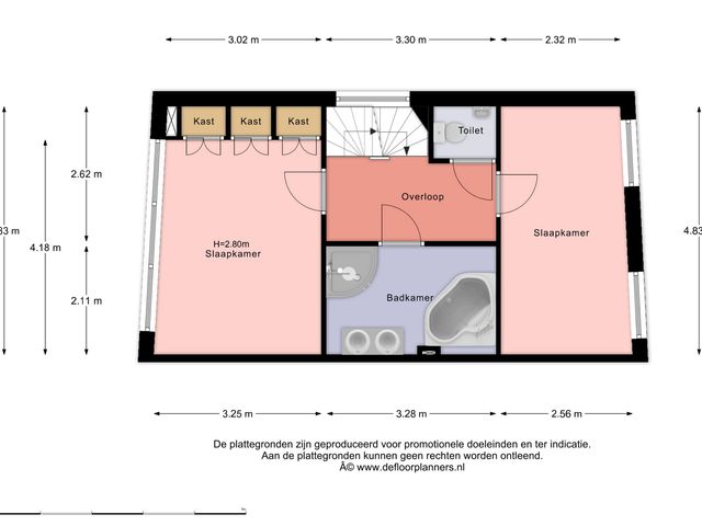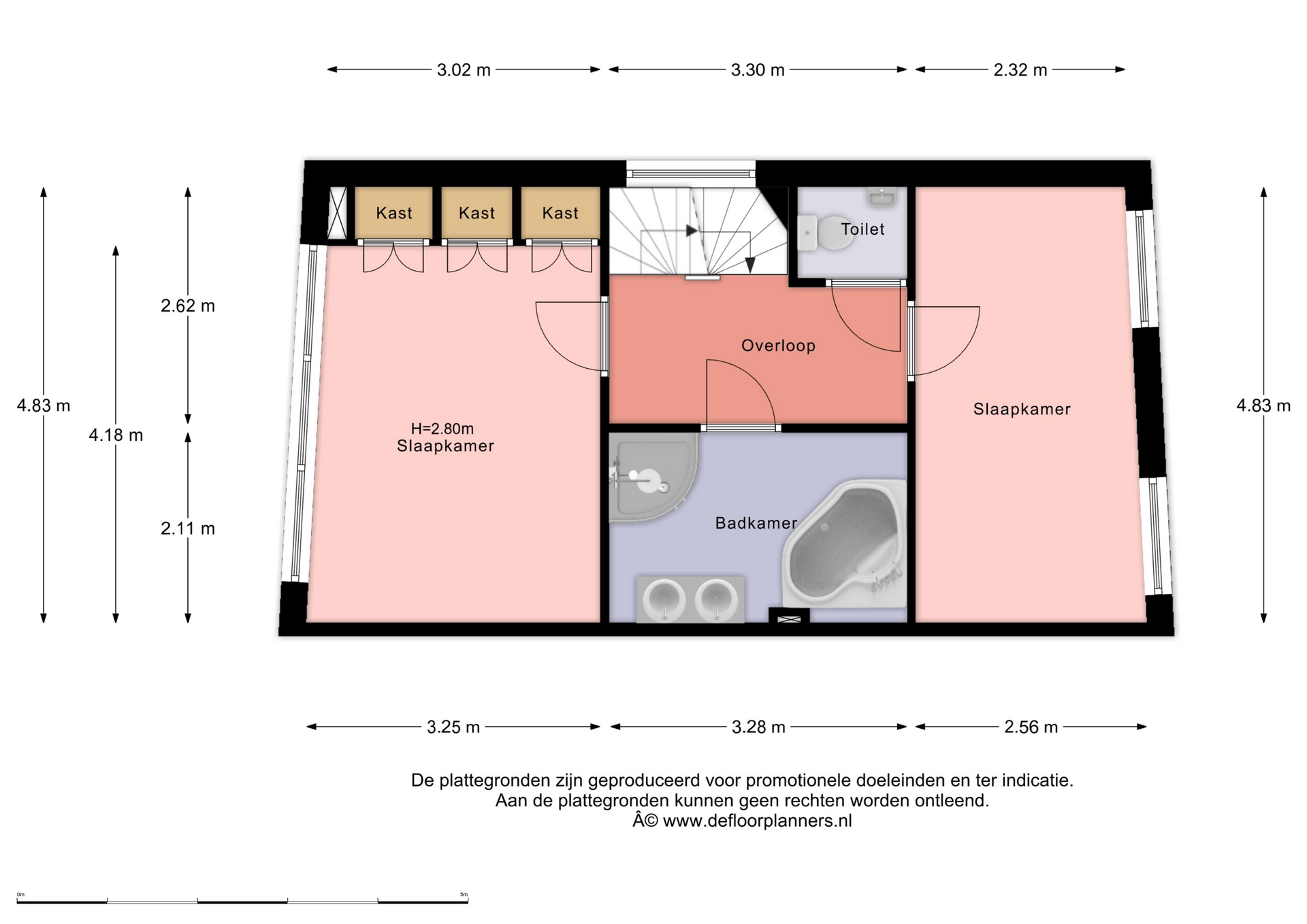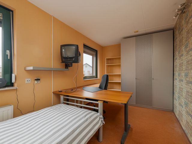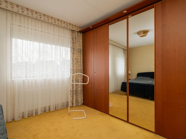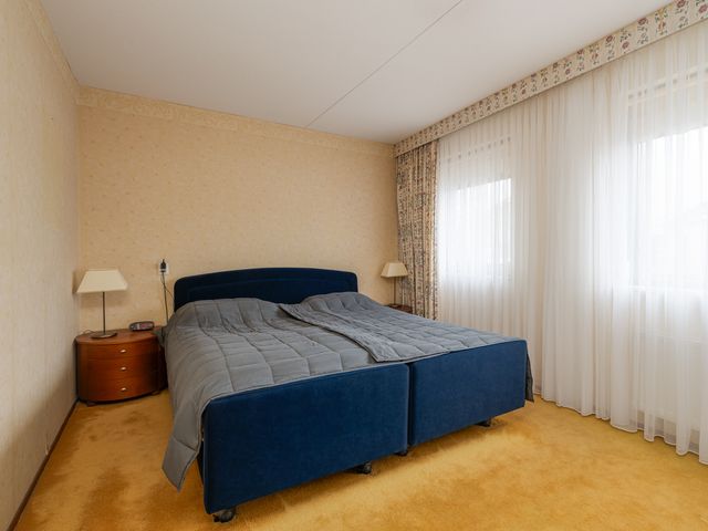 Vanuit de overloop heb je toegang tot de verschillende vertrekken. De hoofdslaapkamer aan de voorzijde heeft een oppervlakte van ca. 12,8m² en is voorzien van een ingebouwde kast en grote raampartijen.