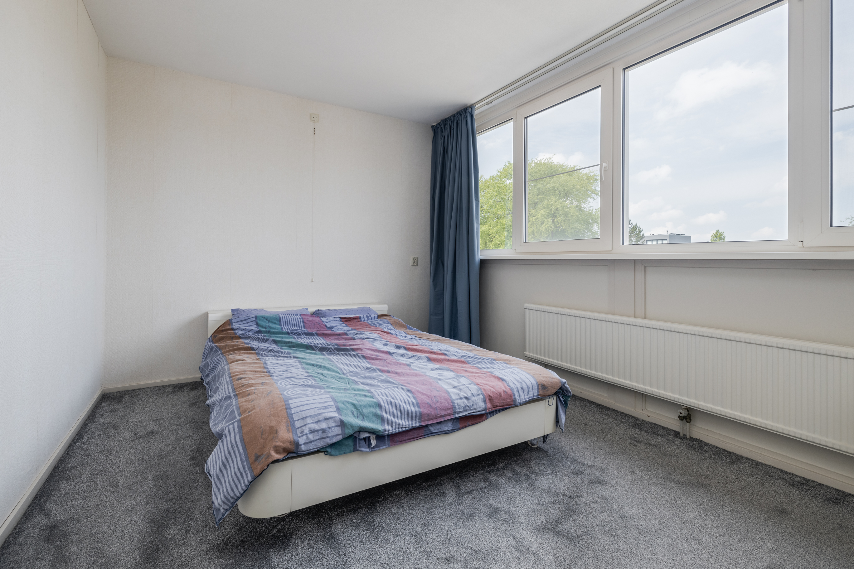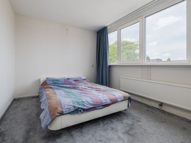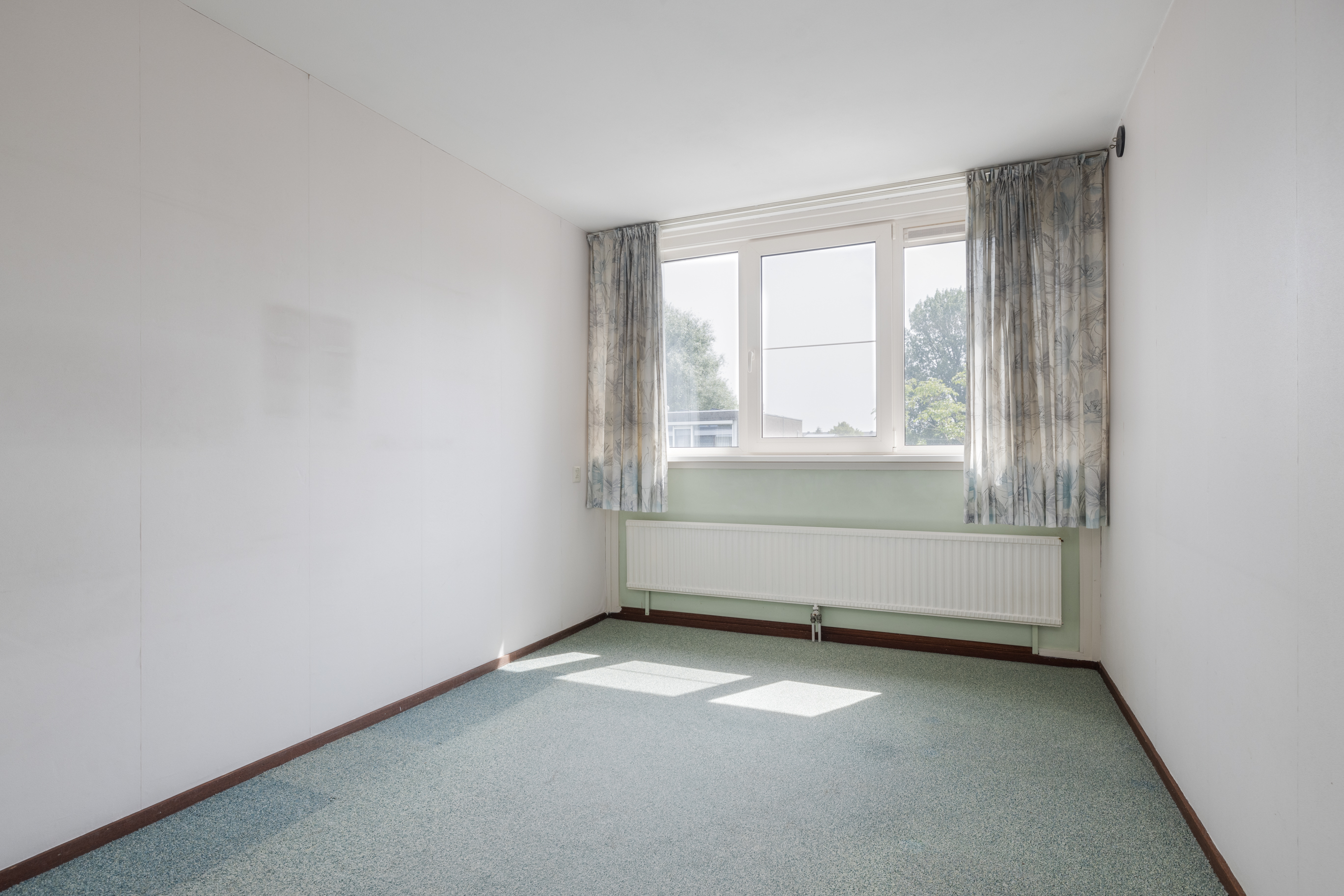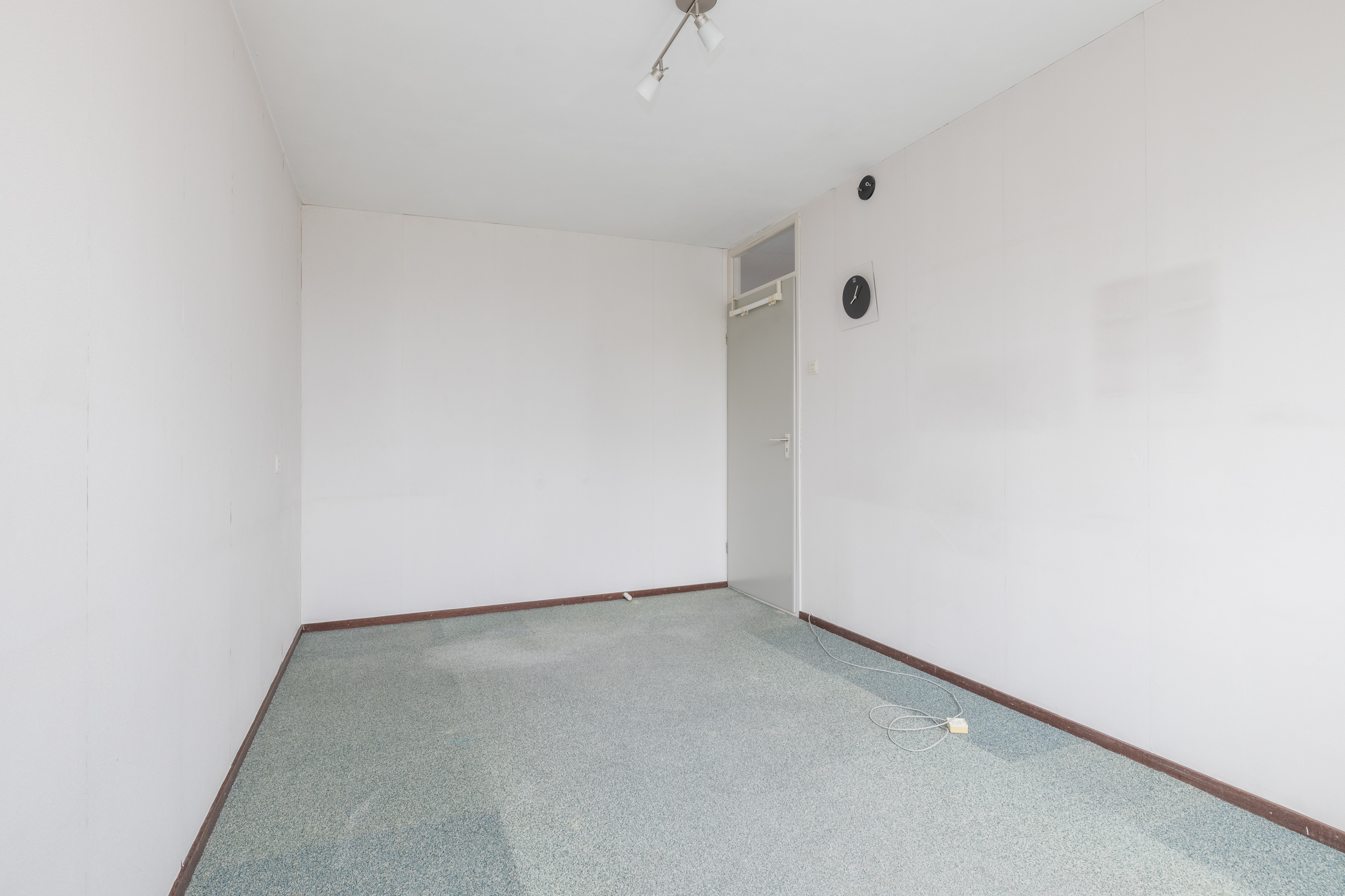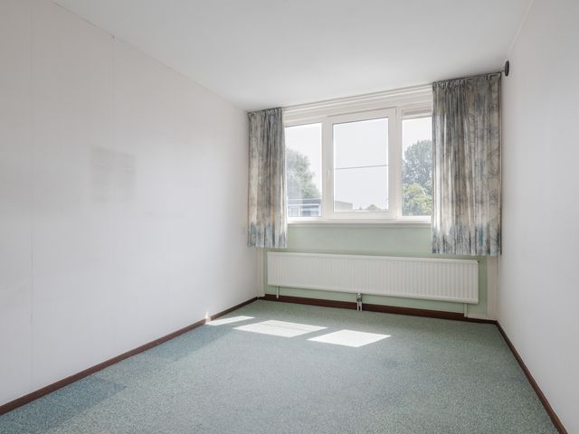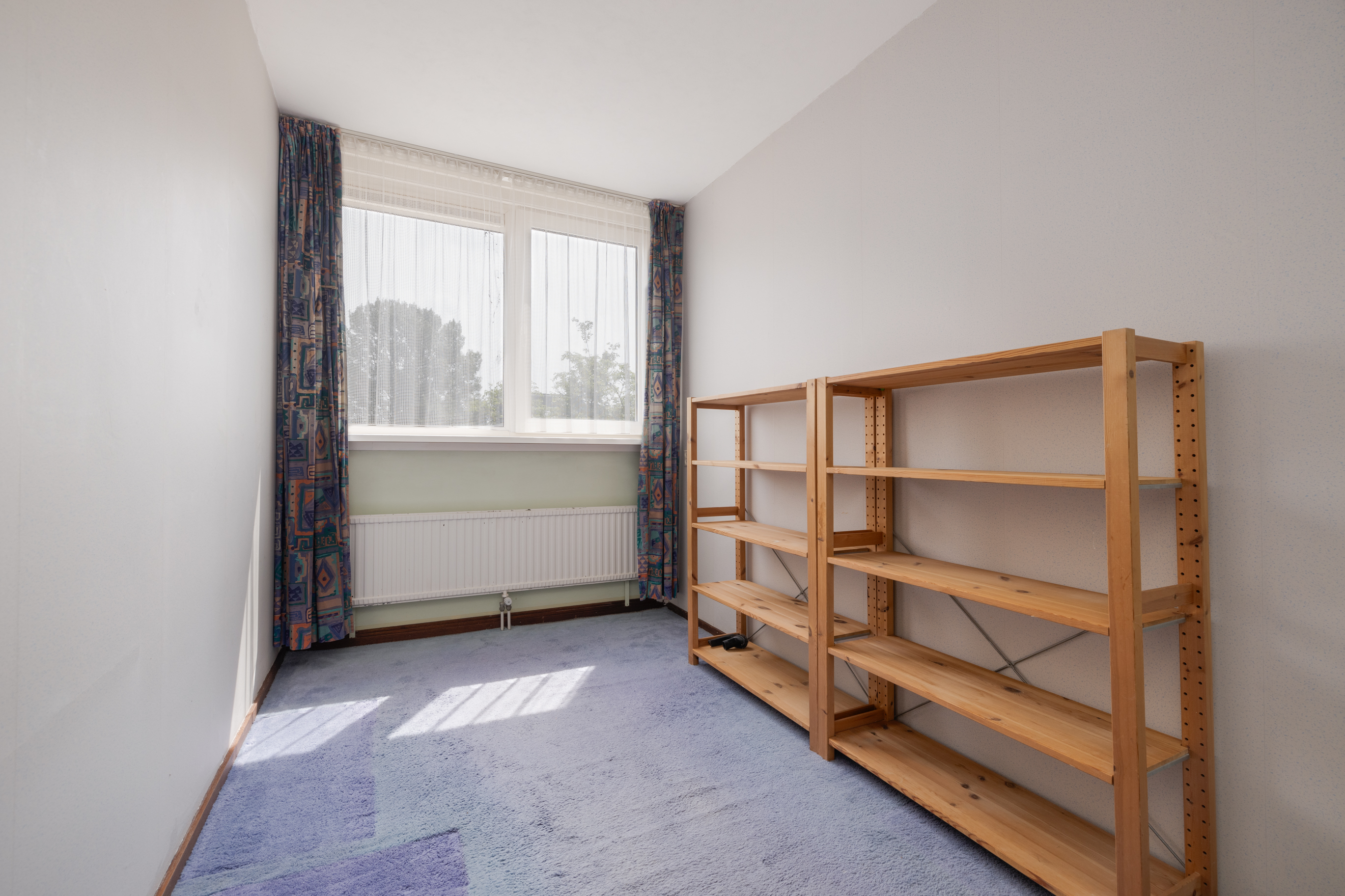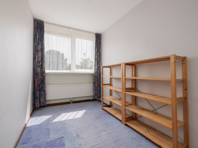 Slaapkamer III is circa 14m2 en gelegen aan de voorzijde. Deze kamer is voorzien van een grote kastenwand en een tweepersoonsbed.