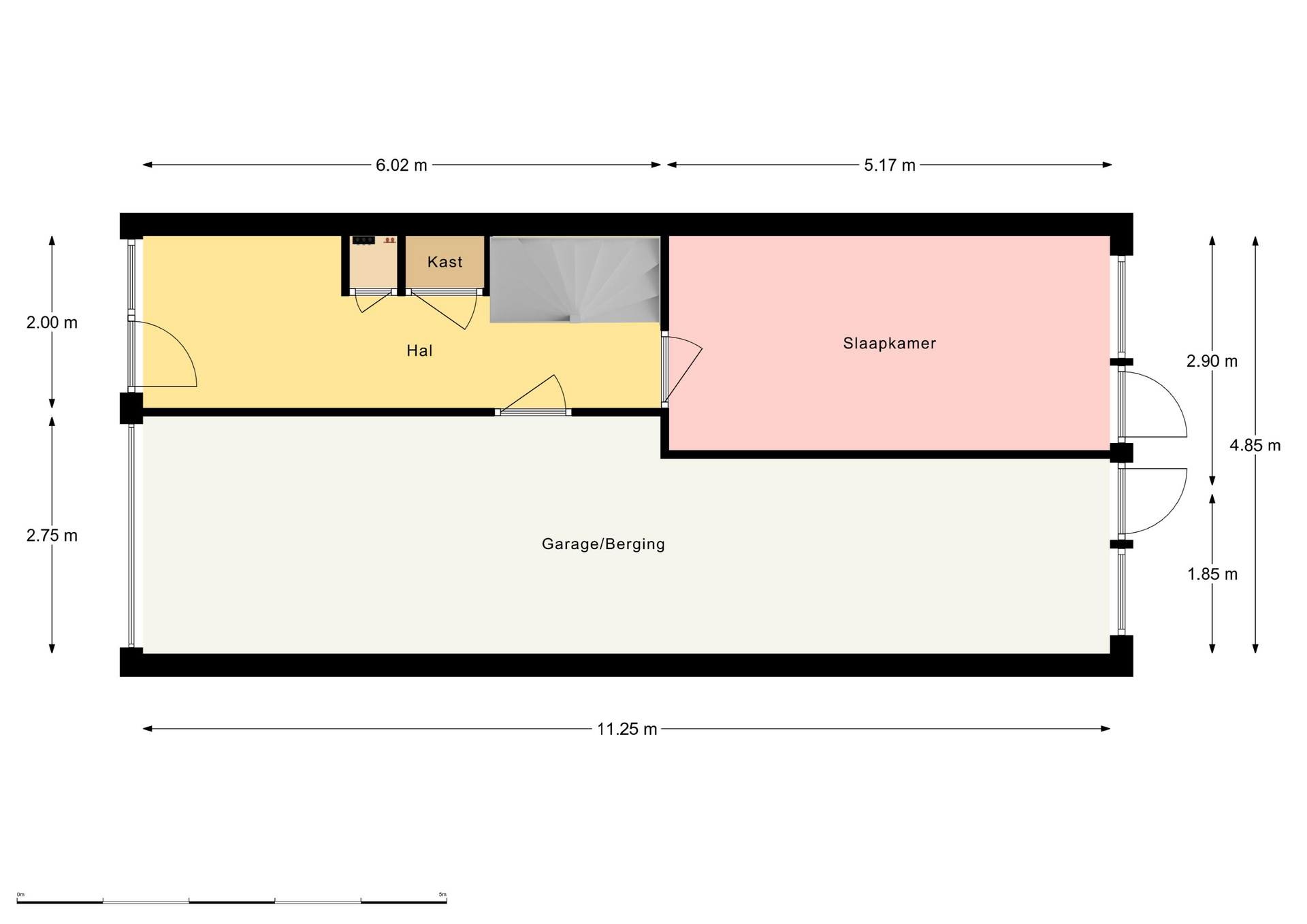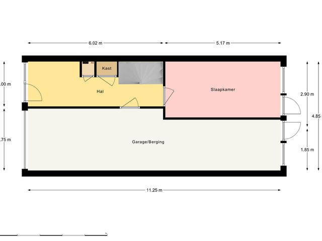 Entree in de hal met meterkast, bergkast en trapopgang naar de woonverdieping. Vanuit de hal toegang tot de garage en toegang tot de slaapkamer/tuinkamer.