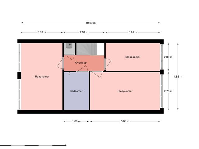 Overloop met wasmachine en/of wasdroger opstelling en toegang tot alle vertrekken. Slaapkamer I (circa 8m2) en Slaapkamer II (circa 12m2) zijn gelegen aan de achterzijde van de woning.